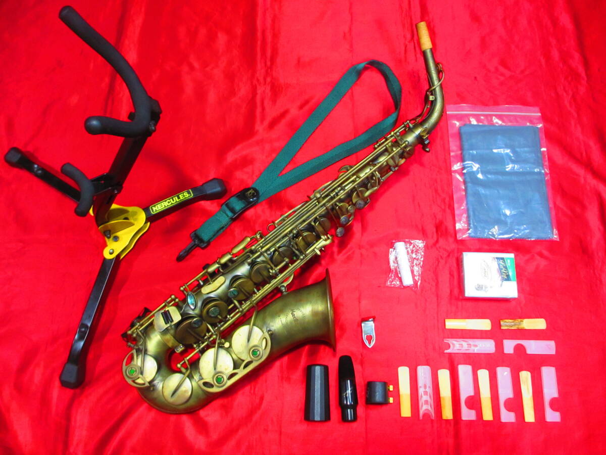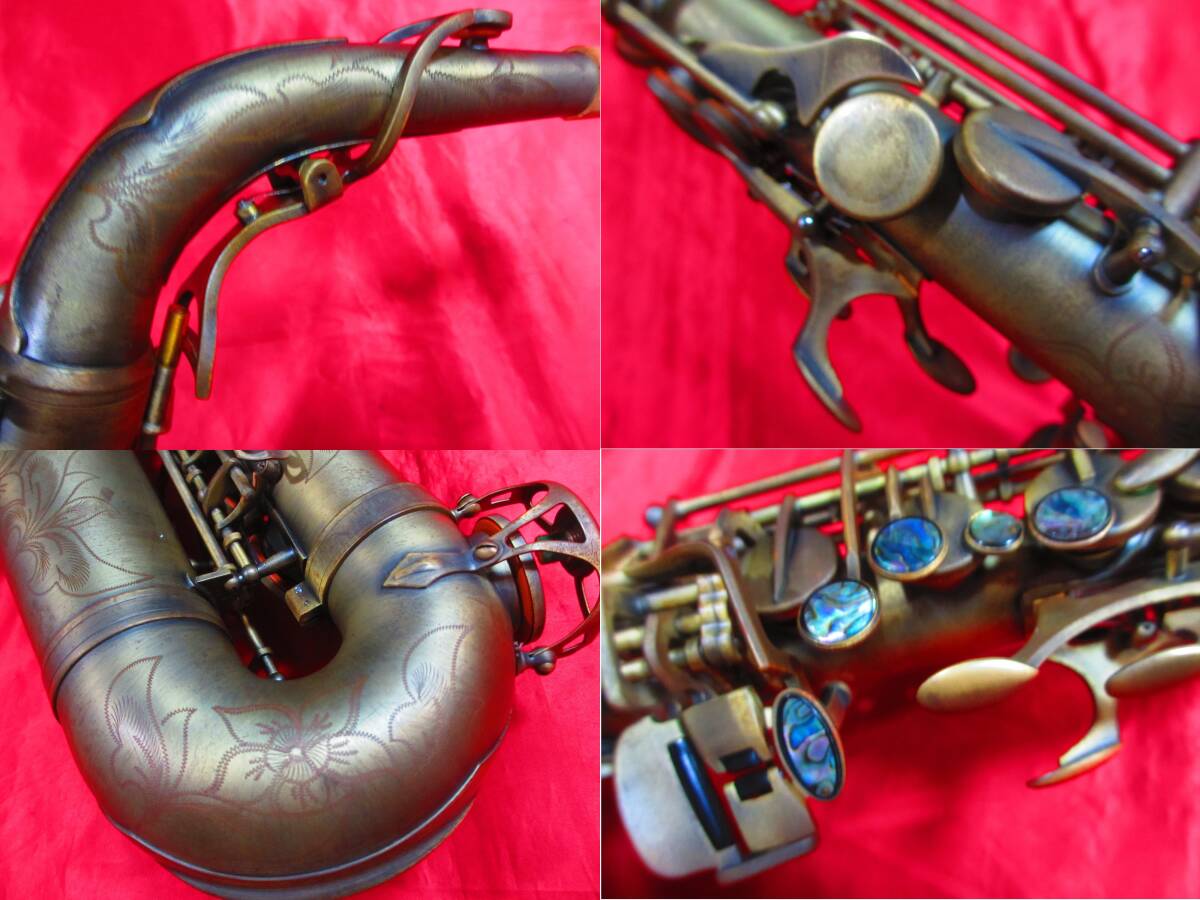 ・出品にあたり総合調整しましたので、低音から高音までバランス良く鳴り、音程も良好で、見た目ヘビーな印象ですが、試奏では意外にもセルマーSA80に近い倍音の豊かなやや雑味のある軽いサウンドで充分実戦で対応出来る優秀な個体です。(アメセルM7、フラセルSA80、カドソンA-900GB、シルフィードA-2000GP、ヤマハYAS82Z、LAサックスBL、ユニゾンA300ⅡBGXにて比較検証。主観)