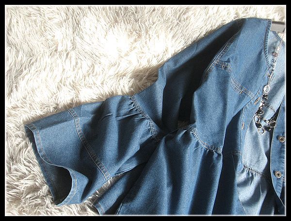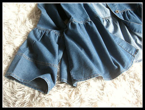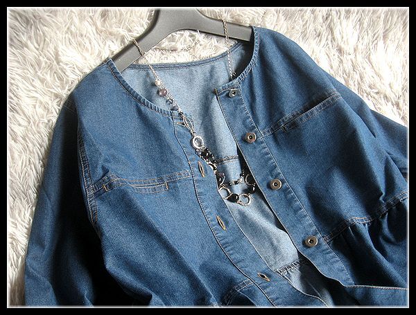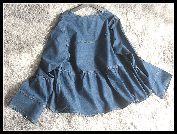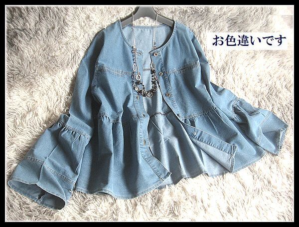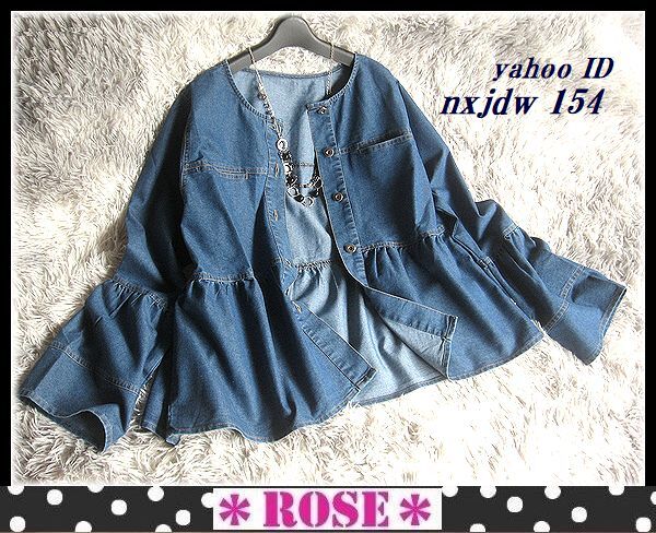 ◆Rose◇ゆったりワンサイズ・綺麗カジュアル♪フレアデザインのノーカラーデニムJK/インディゴブルー