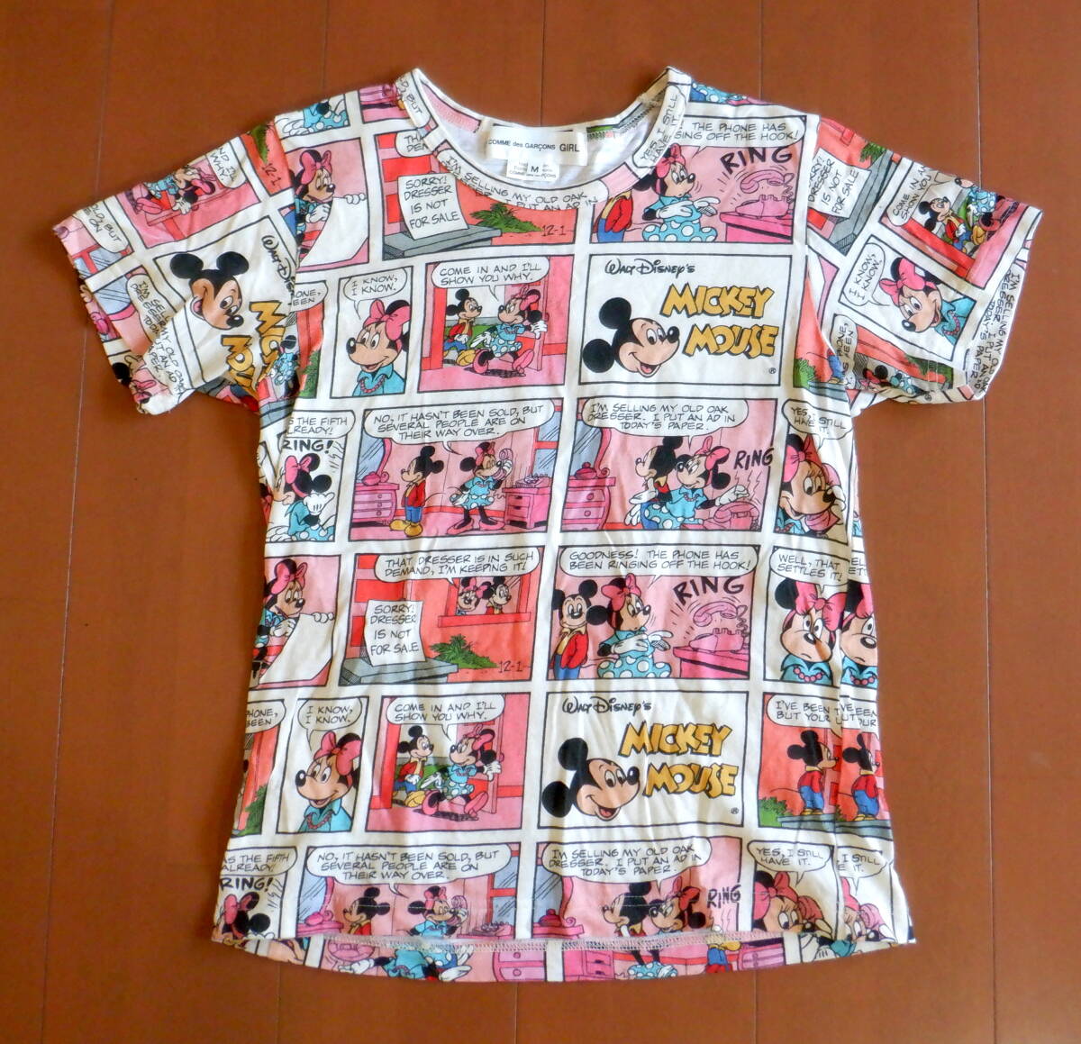 ●3 コムデギャルソン ディズニー 半袖 Tシャツ コラボ レディース M COMME des GARCONS GIRL ピンク コットン 綿 丸首 ミッキー ミニー