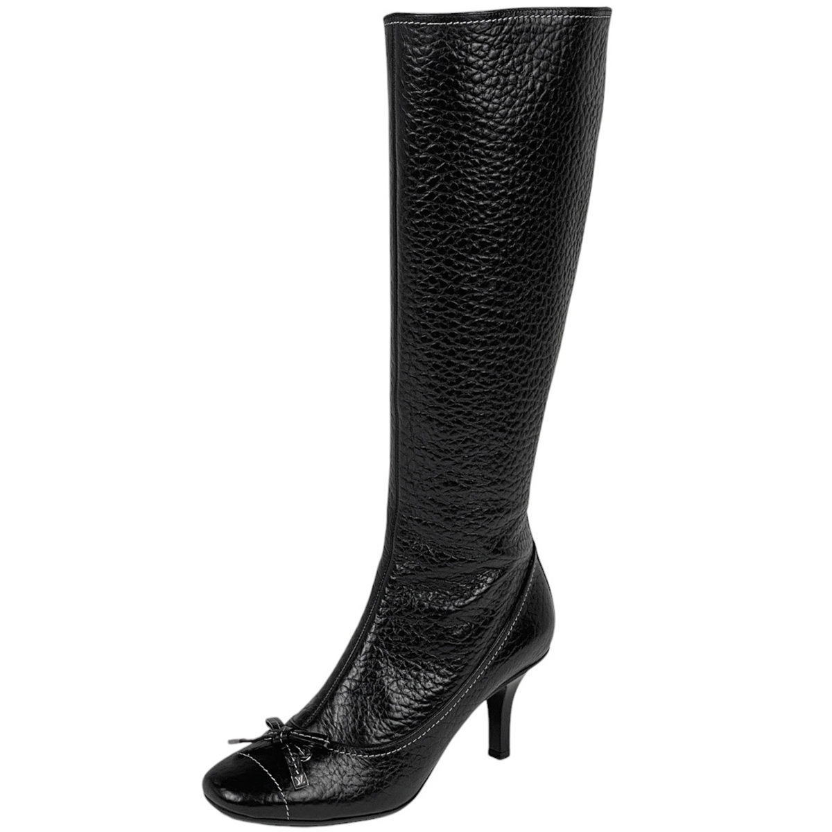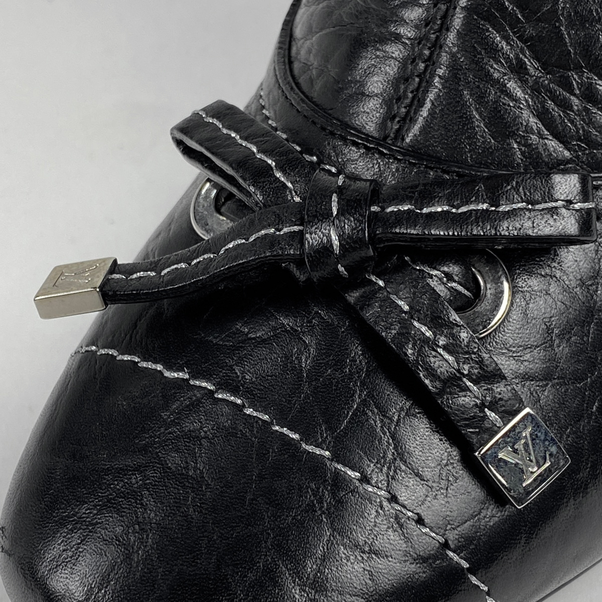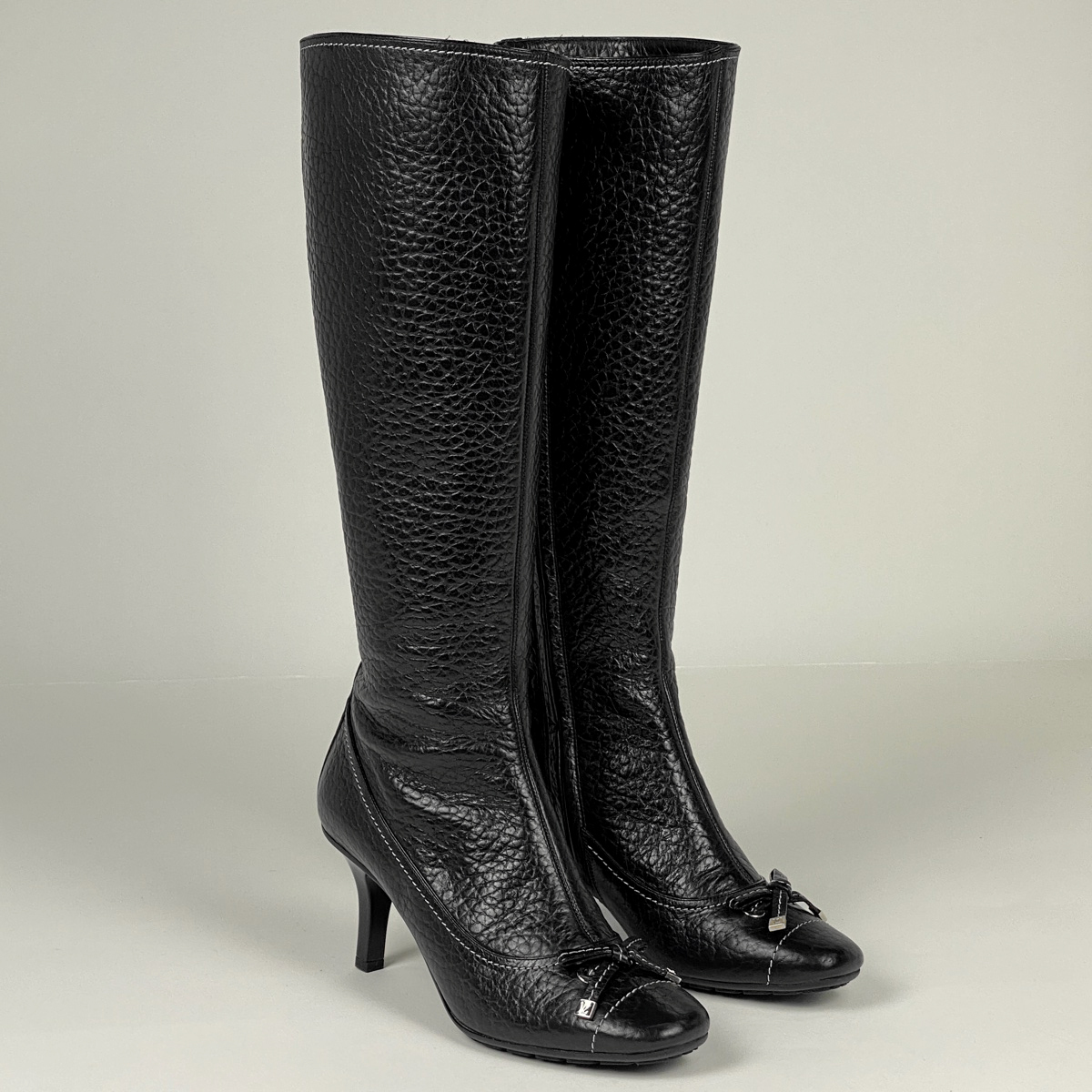 | ルイ・ヴィトン Louis Vuitton ロゴ ロングブーツ リボン ハイヒール ブーツ レザー ブラック レディース 【中古】 |