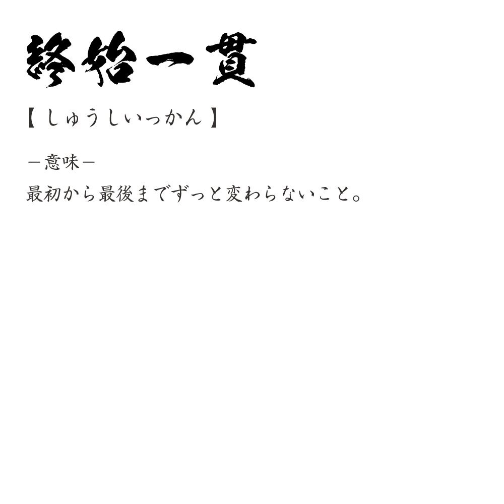 終始一貫 (しゅうしいっかん) 書道家が書く プリント Tシャツ S M L XL XXL 120 130 140 150 G-S G-M G-L 【 四字熟語 】