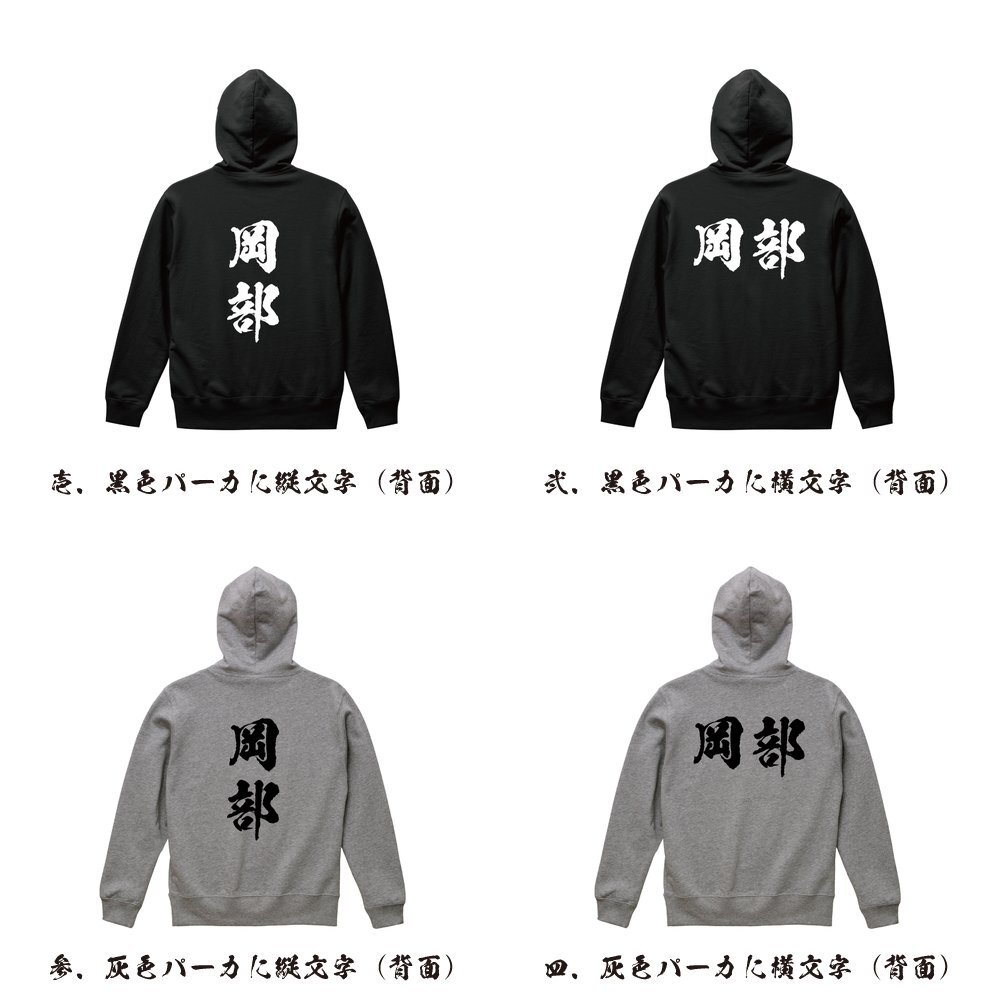 岡部 オリジナル パーカ 書道家が書く プリント フルジップ パーカー S M L XL XXL 110 130 150 【 名字 】