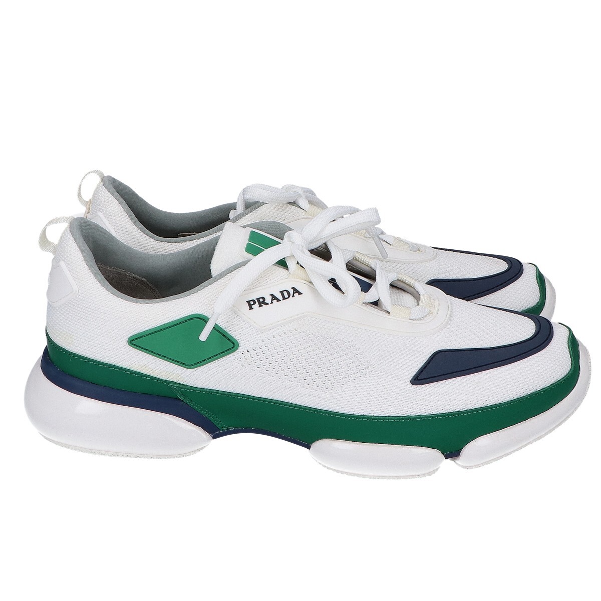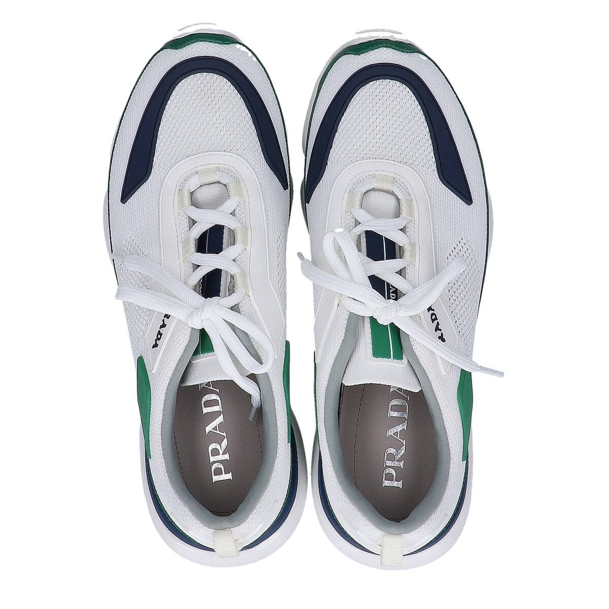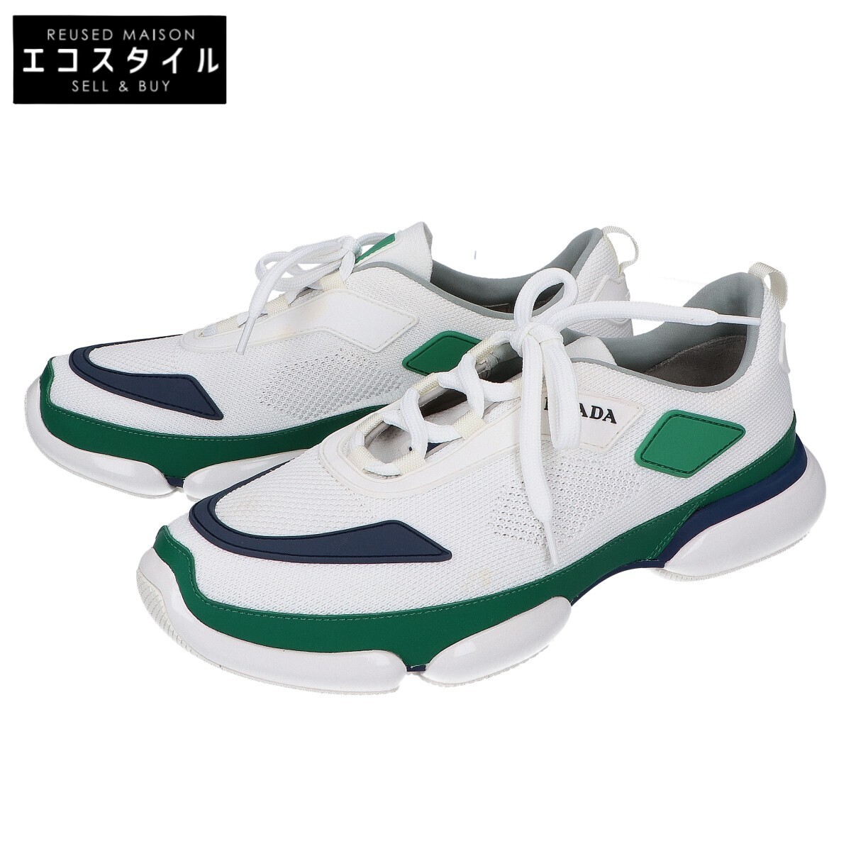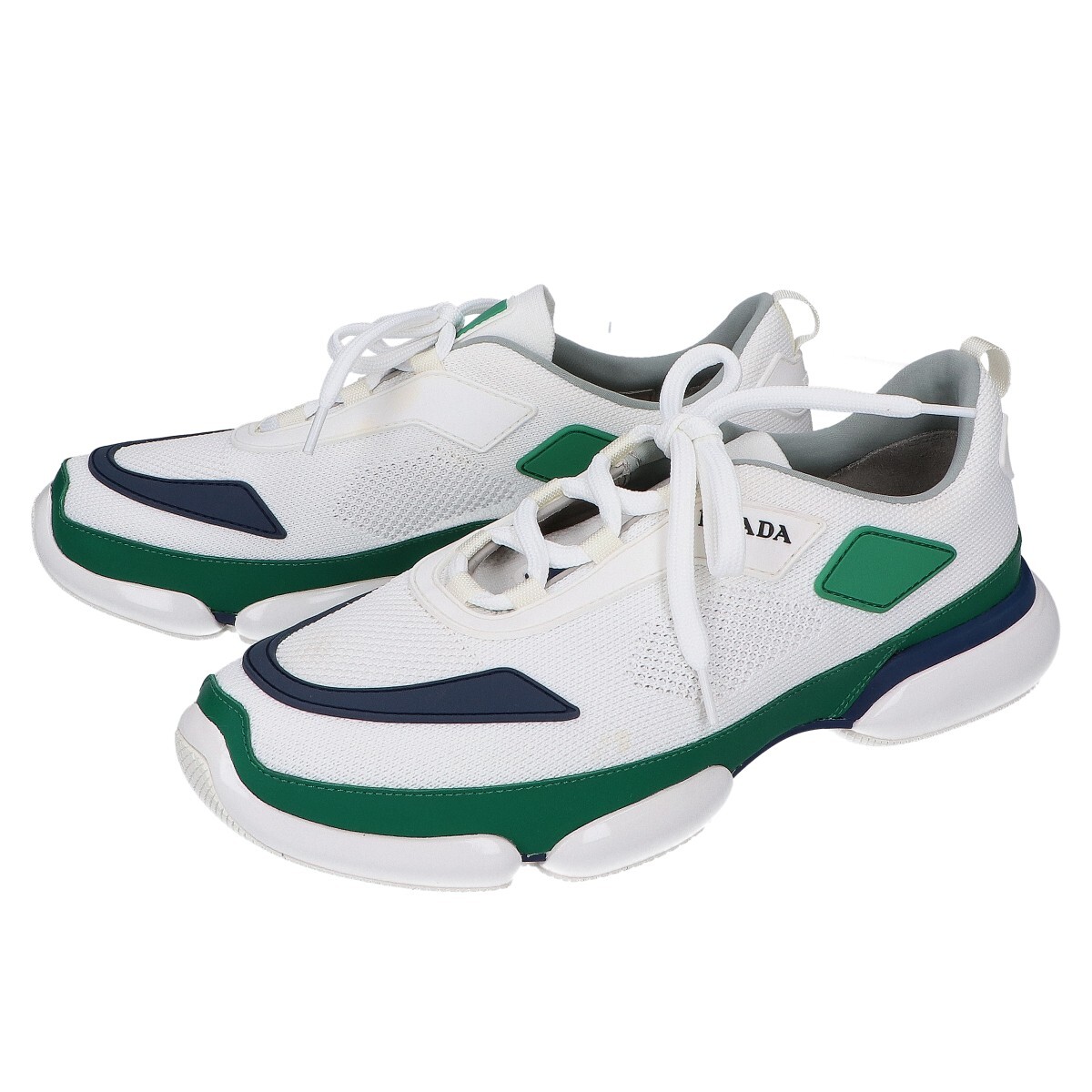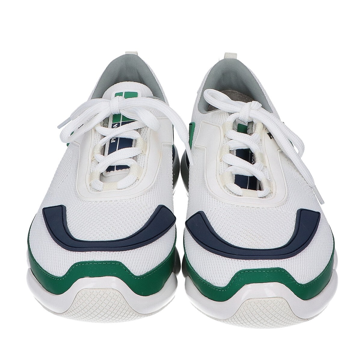 美品 PRADA プラダ 2EG253 クラウドバスト ニットファブリック スニーカー 6 1/2 ホワイト/グリーン/ネイビー メンズ