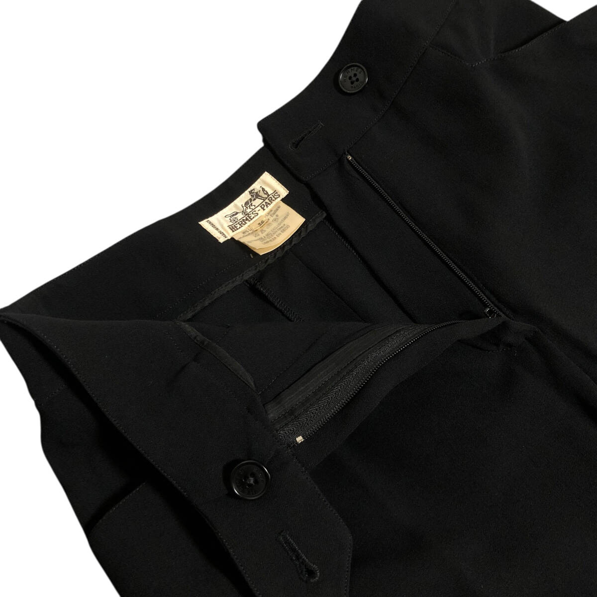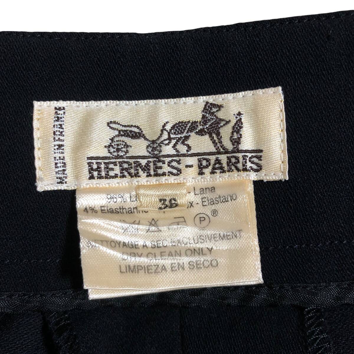 HERMES エルメス スラックス パンツ ウール 36 黒 フランス製 レディース A12