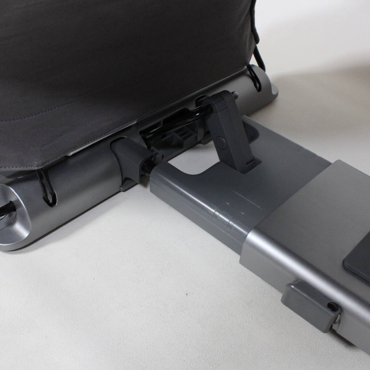 ●足元のペダルでリクライニング操作でき、シートの洗濯も可能。