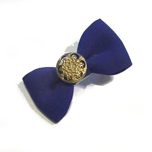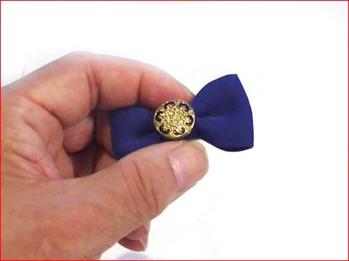 ヘアピン 髪止め 髪飾り ヘアクリップ 1124-08 ゴールドボタン付き リボンベイククリップ 無地 ブルー 【雑貨屋が販売】