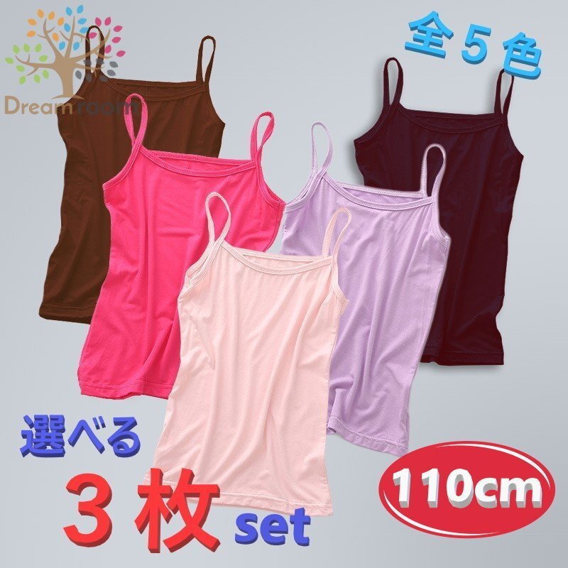 kids 全5色 選べる 3枚☆【110cm】girls キャミソール K-279 ノースリーブ キャミ 子供 インナー 下着 シャツ