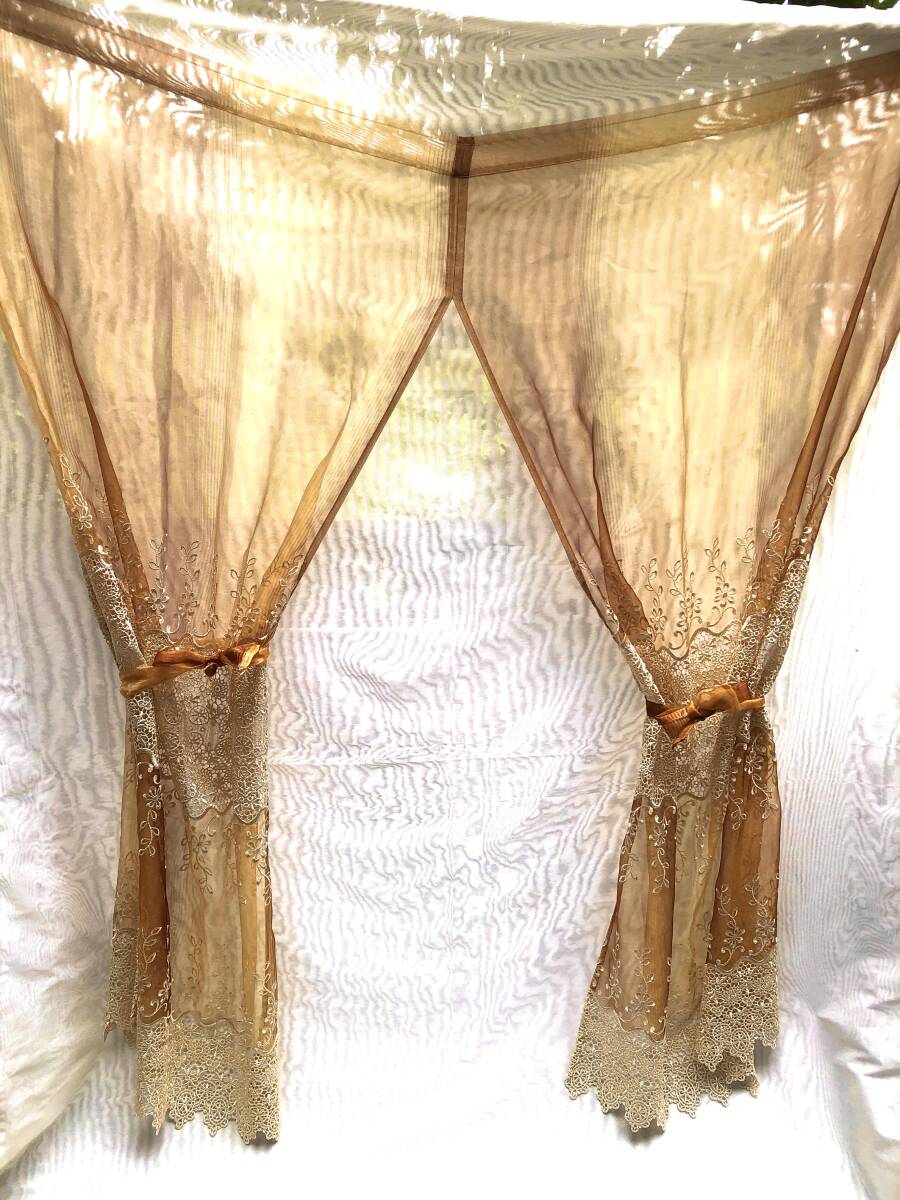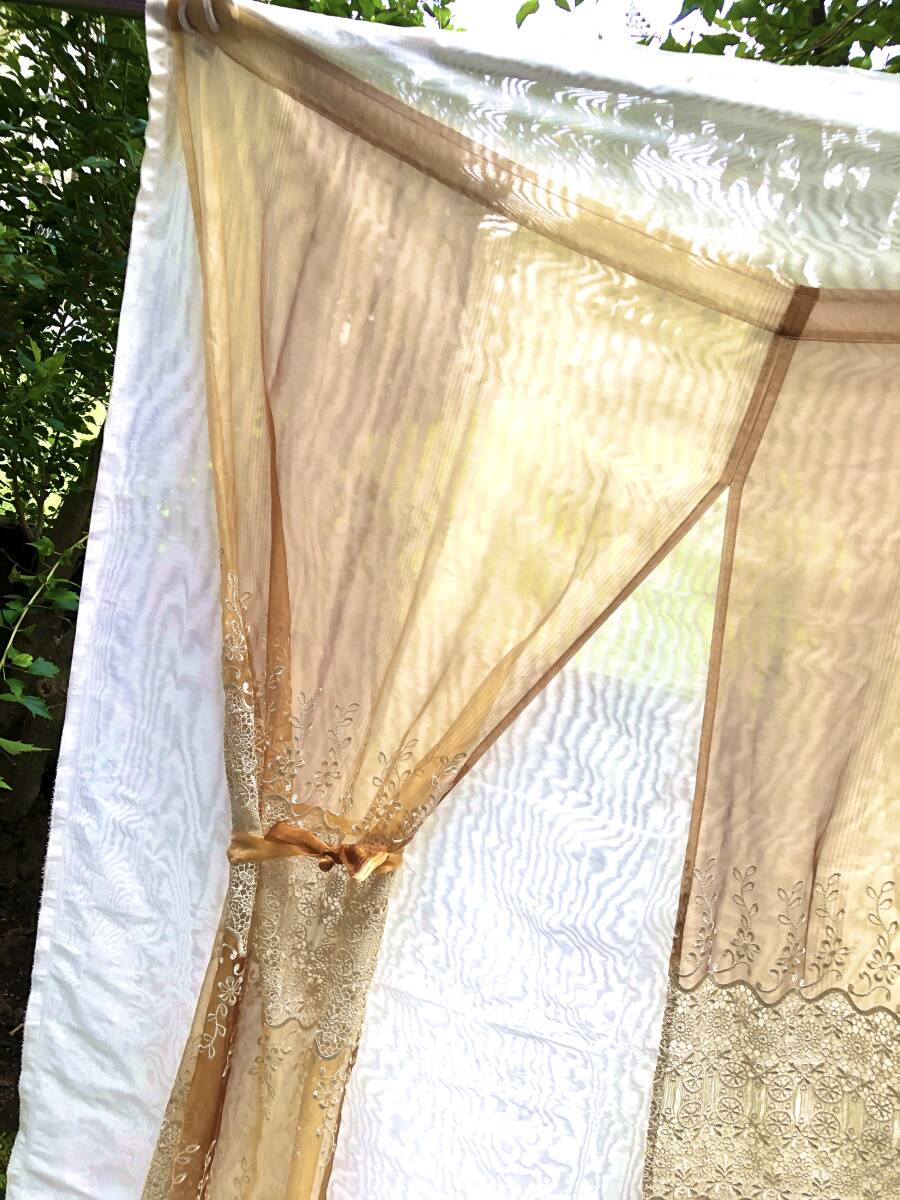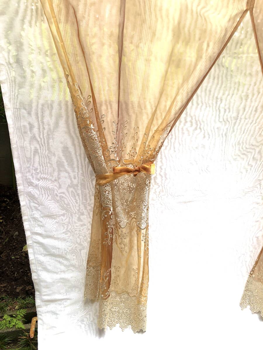 川島織物セルコン カフェカーテン セレブリティ シフォン素材 豪華レース 美品 150センチ幅カーテン