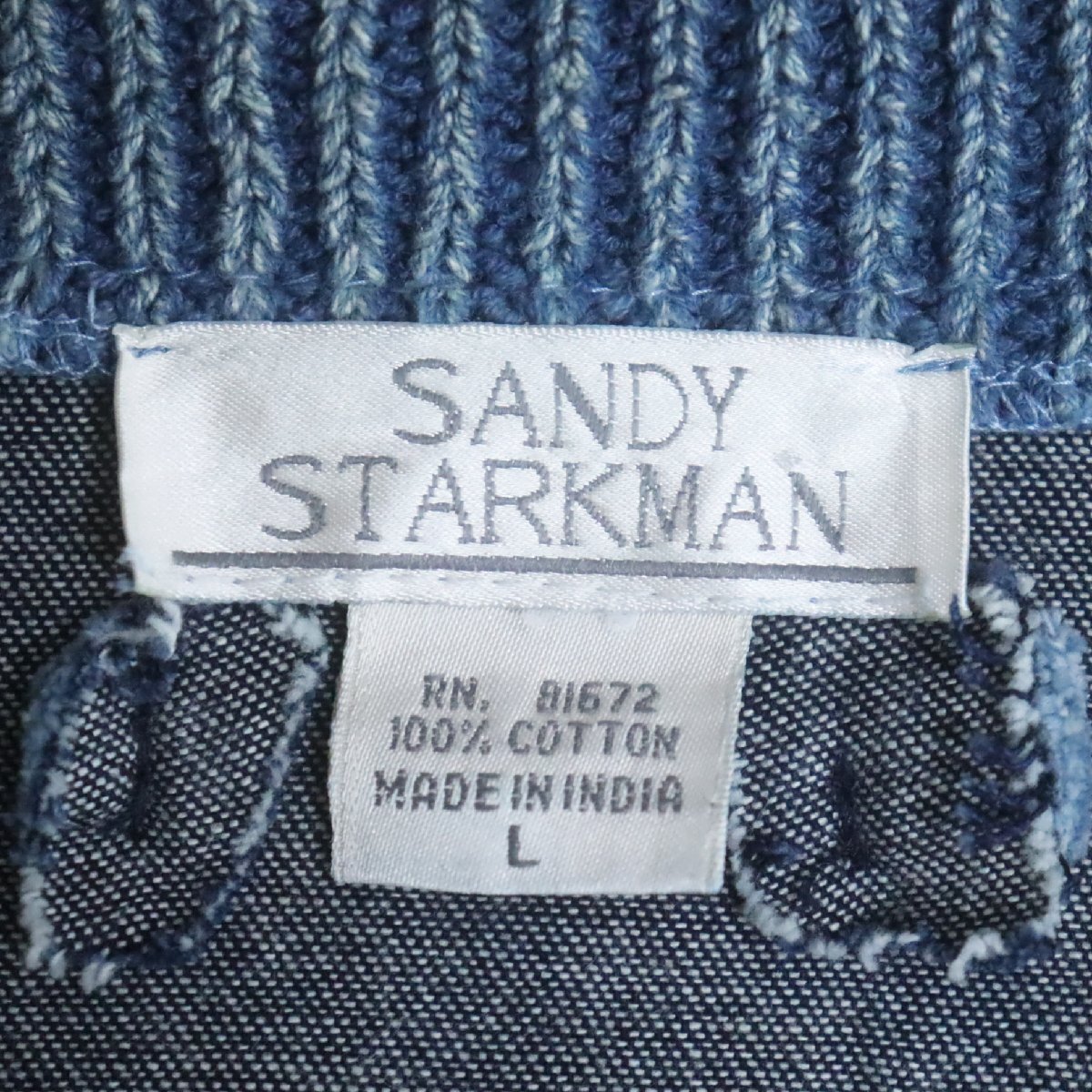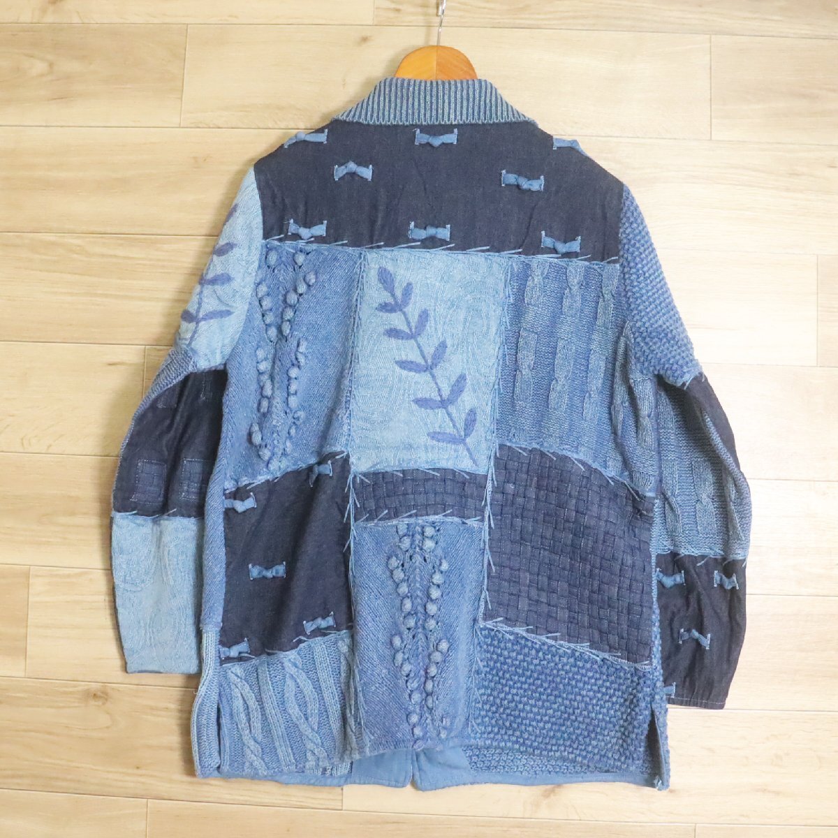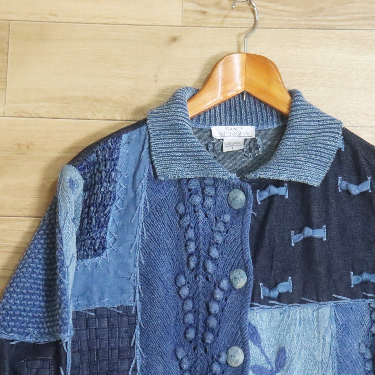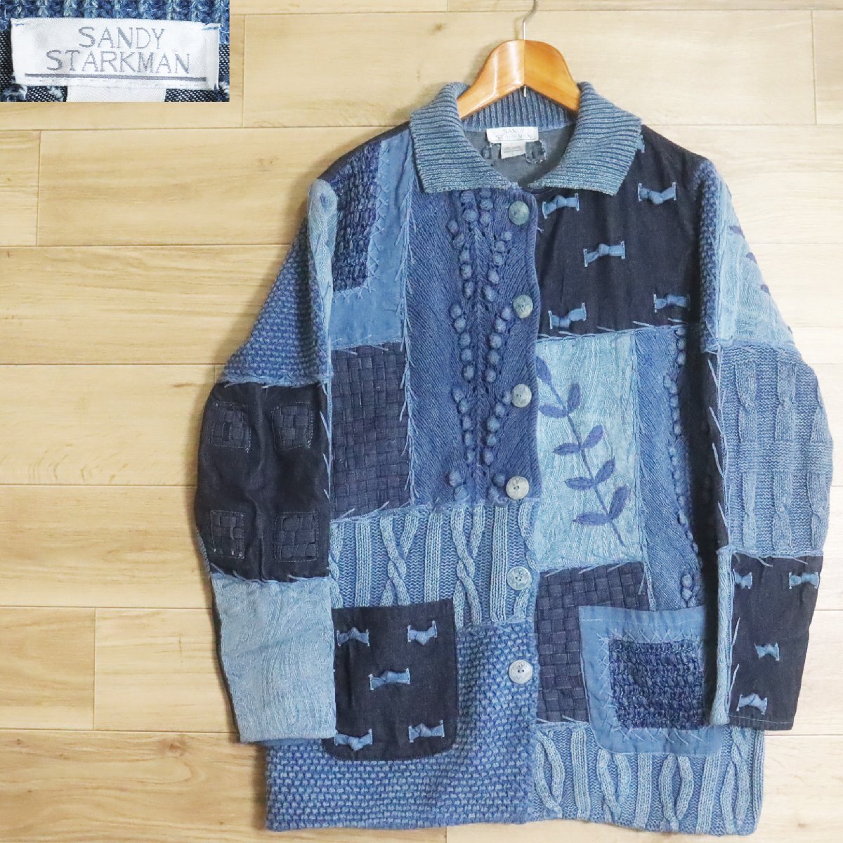 N2R/R8.5-1 SANDY STARKMAN パッチワーク ニット セーター デニム カバーオール ジャケット 総柄 刺繍 L ブルー系