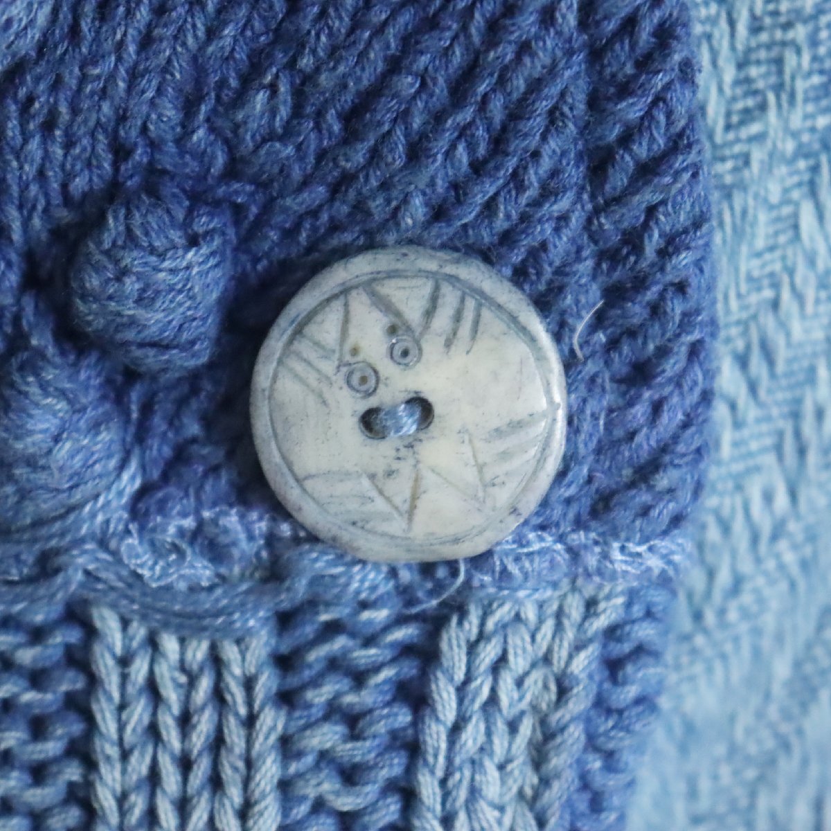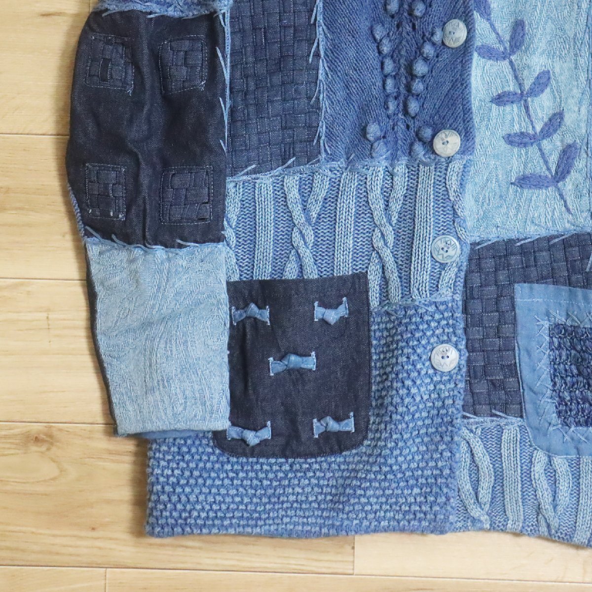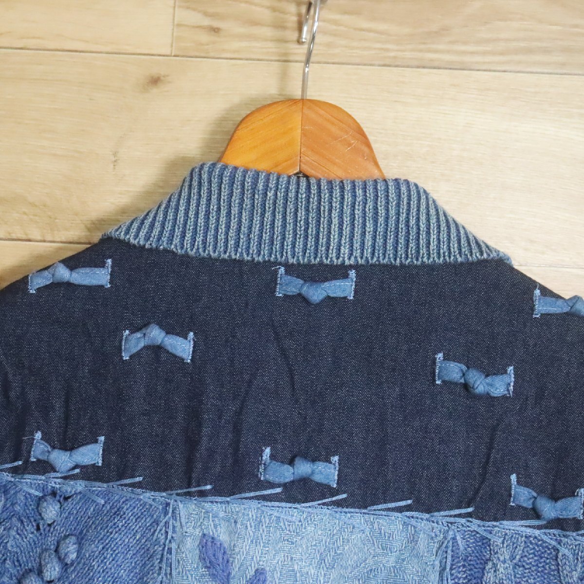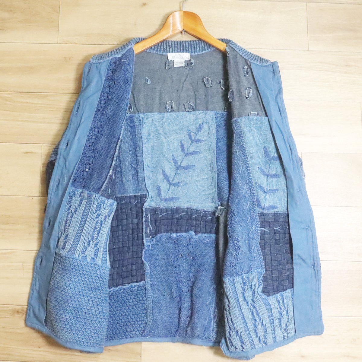 N2R/R8.5-1 SANDY STARKMAN パッチワーク ニット セーター デニム カバーオール ジャケット 総柄 刺繍 L ブルー系