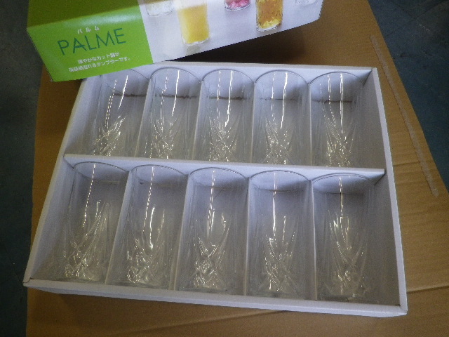 昭和レトロ 石塚ガラス パルム タンブラー10個セット 未使用箱入 高さ11.8㎝口径6㎝底径5.2㎝