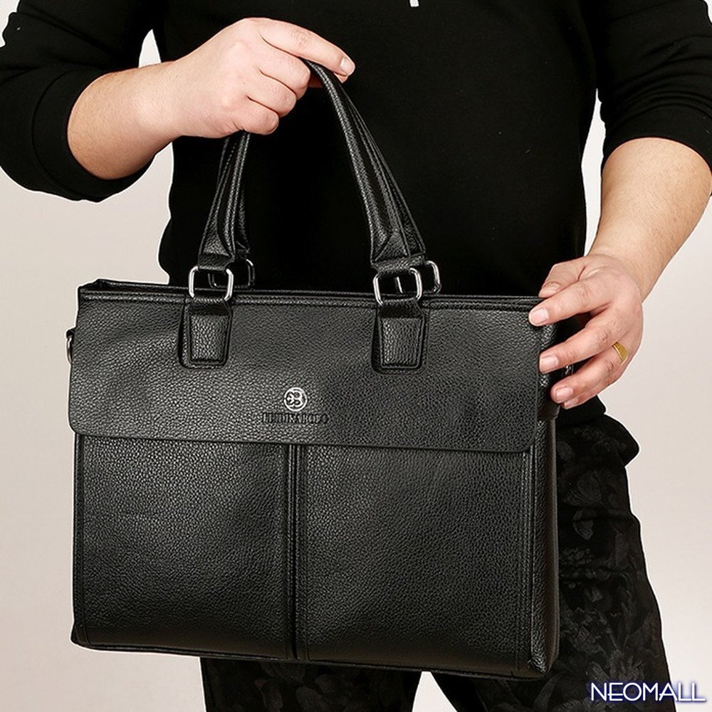 人気☆ 新品 メンズ 高級PUレザー ビジネスバッグ【606】ブラック ブリーフケース ショルダー スクエア 横型 大人気 質感◎