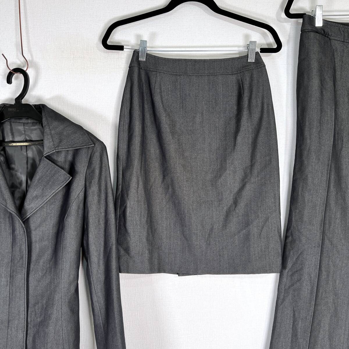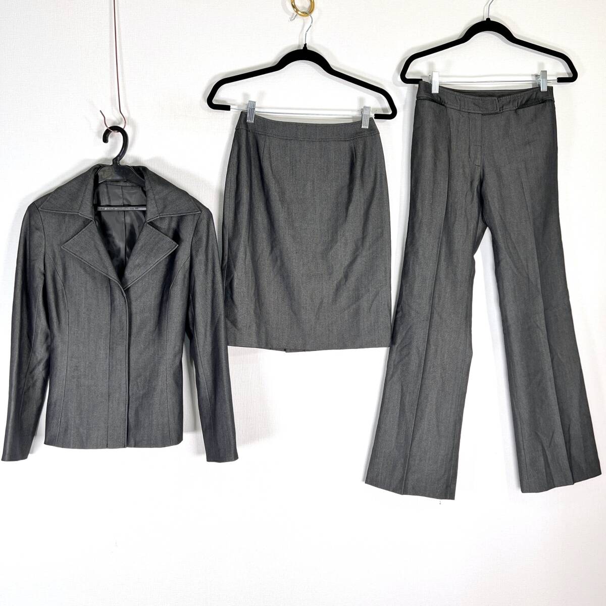 【ASPRI】アスプリ グレー系 スリーピース ビジネススーツ 3点セット 上下セット ジャケット×パンツ×スカート レディース 9AR【c010】