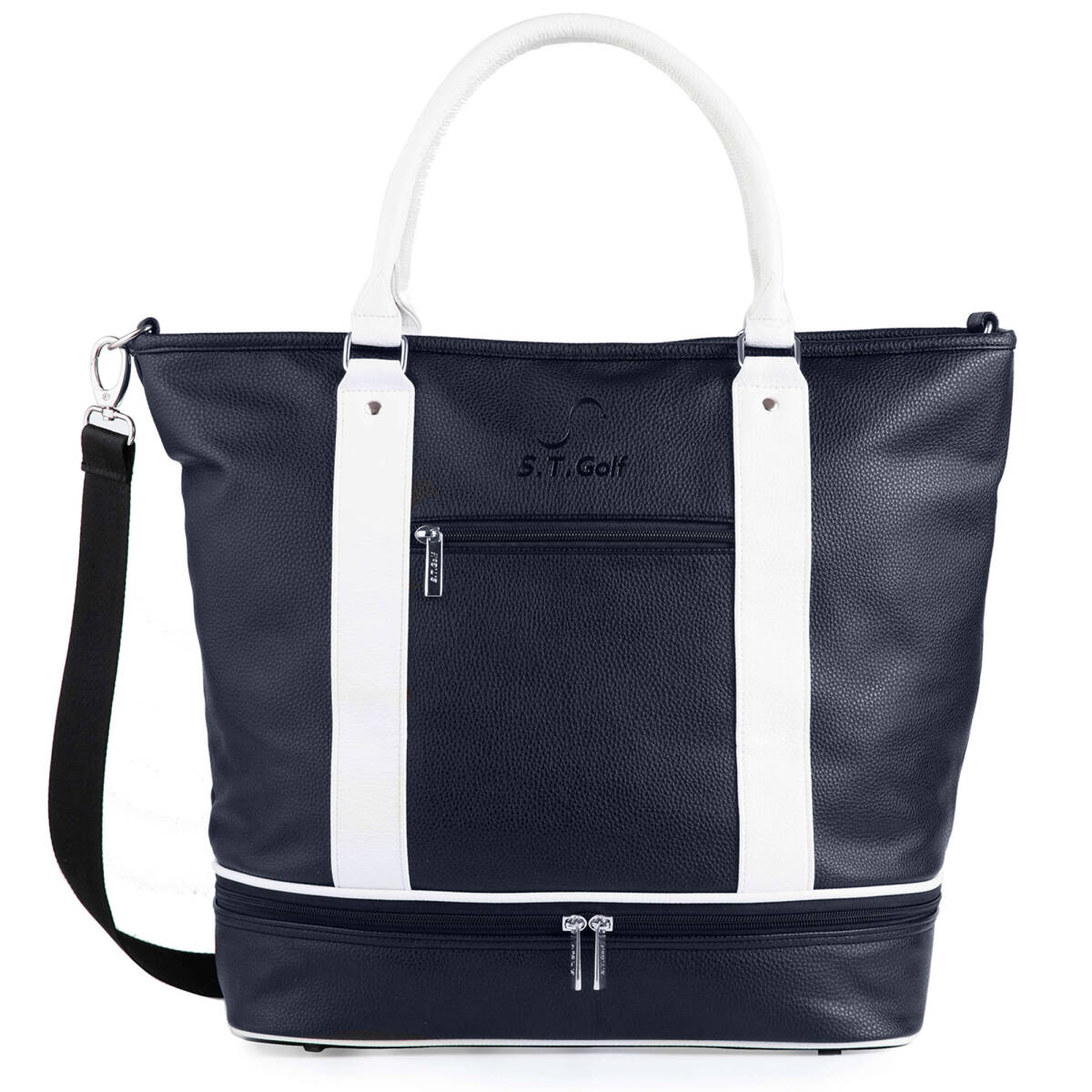 ゴルフ トートバッグ メンズ 高級PUレザー 大容量 シューズ収納可 3WAY 型押しロゴ ショルダーストラップ付属 防水 ネイビー×ホワイト | |||