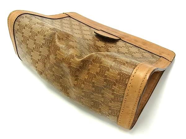 CELINE セリーヌ マカダム柄 ヴィンテージ PVC×レザー ポーチ 小物入れ マルチケース レディース メンズ ベージュ系 DH7982