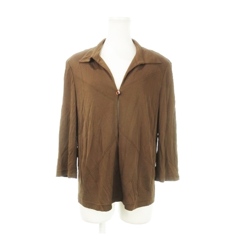 レリアン Leilian カーディガン 襟付き 七分袖 ストレッチ 透け感 11 茶 ブラウン /AH26 レディース