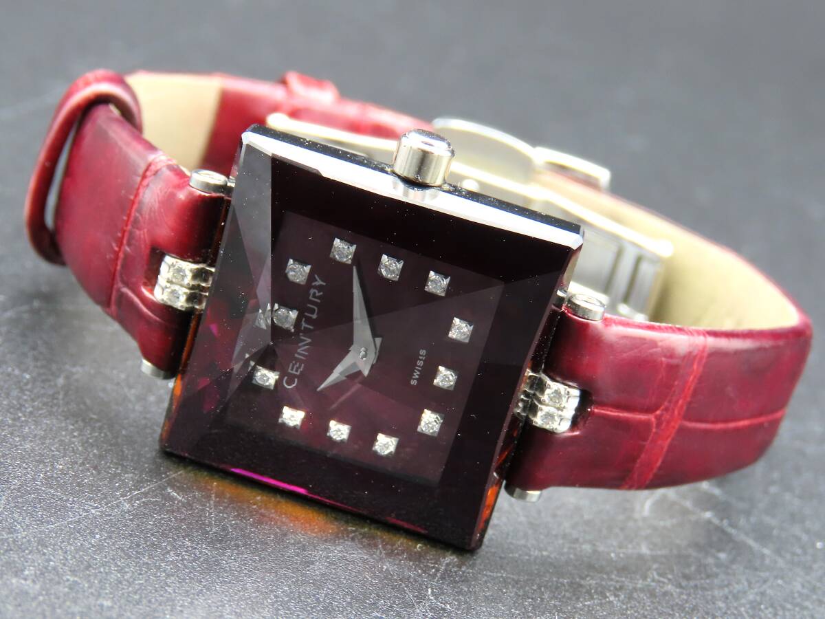 1円~! 稼動品★正規品 CENTURY センチュリー タイムジェム 18金 WG 総重量24.9g パープルダイヤル 純正ブレス レディース腕時計 PPKLG1838