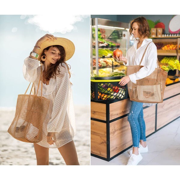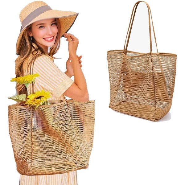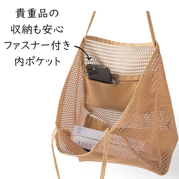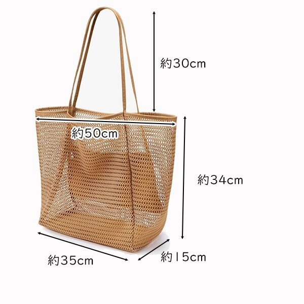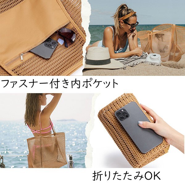 | 商品説明 | 軽量 大容量なメッシュバッグ 使いやすい肩掛けトートバッグ形状で 折りたたみ可能タイプ 貴重品の収納も安心な ファスナー付き内ポケット有り 折りたたみ収納もOK プールバッグ ビーチバッグ エコバッグとしてもおすすめです サイズ 底辺:約35cm 上辺:約50cm 高さ:約34cm マチ:約15cm ハンドル高:約30cm 海外製品のため国産品質と比較して細部の縫製が甘い場合がありますが、価格と引き換えになっている部分ですのでご了承ください