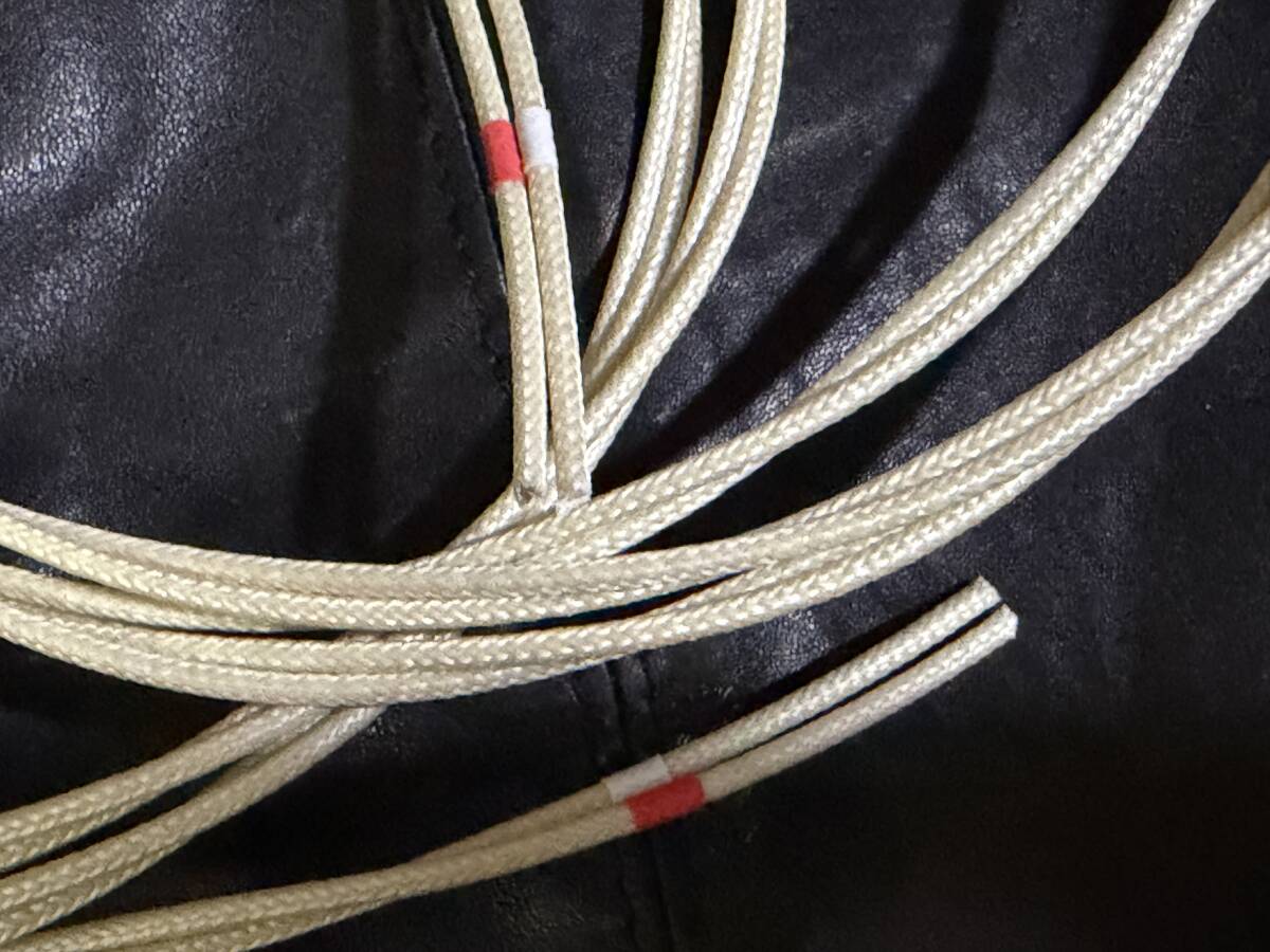 *私どもでは、通常、スピーカーケーブルは撚線に限ると思っております。迷走電流(???)などと言われたりしますが、その入り組んだ構造が素晴らしい音楽性に繋がるのだと思います。これまでの 17GA絹巻撚線スピーカーケーブルは本当に素晴らしいです!