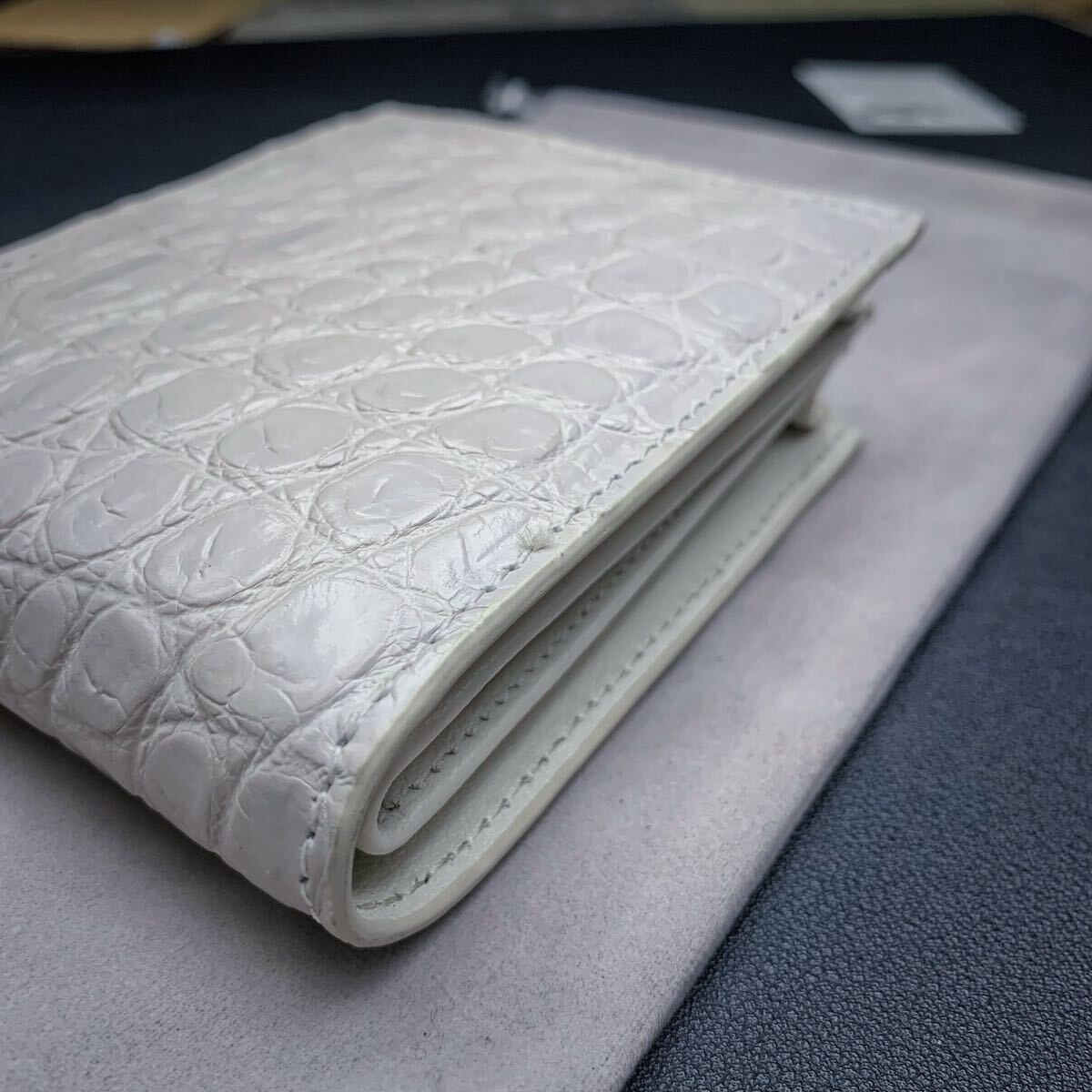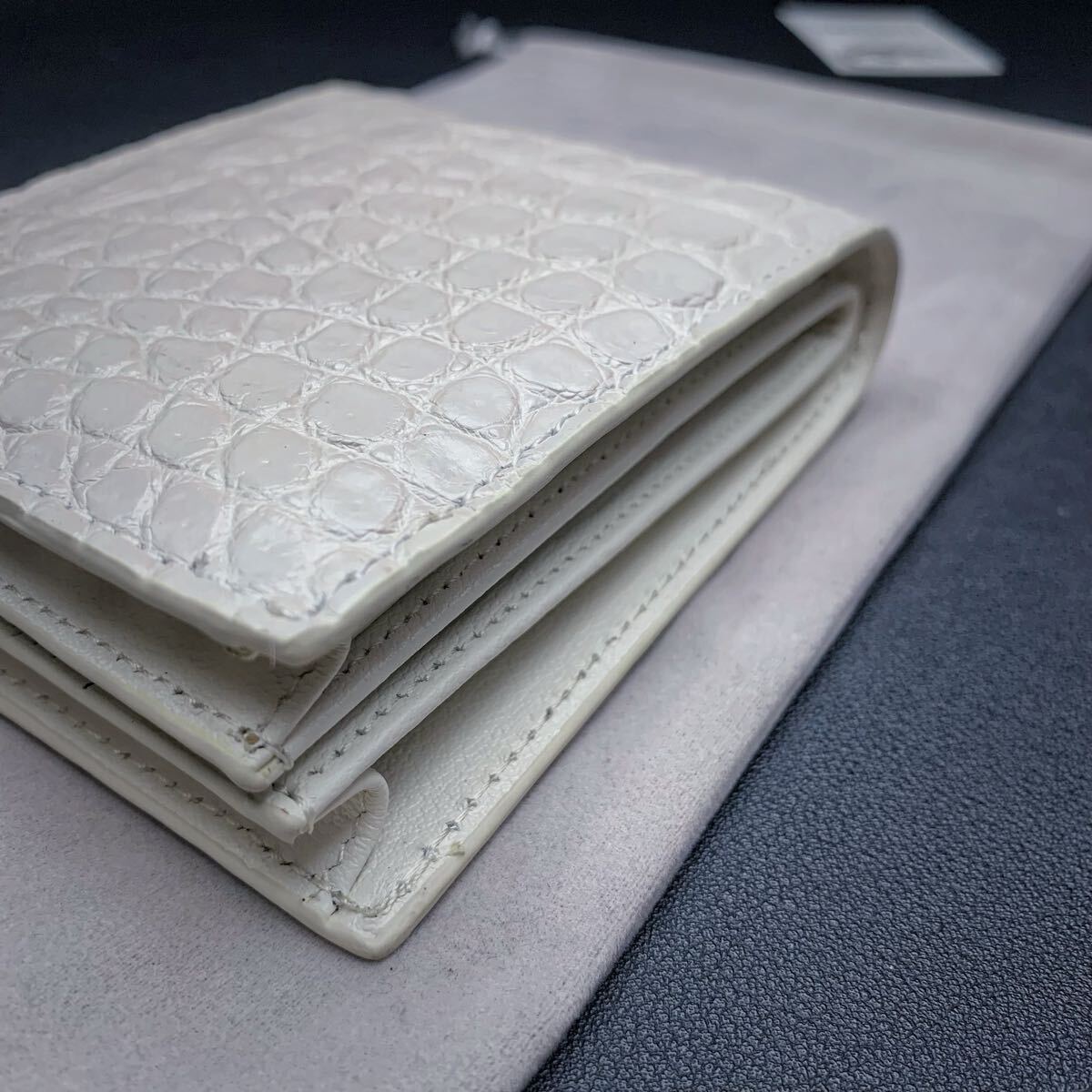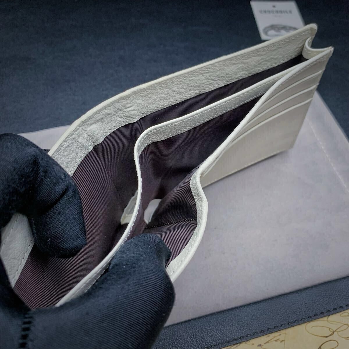 ・クロコダイルと呼ばれている品種のワニ革は人気が高く、独特の模様と凹凸が魅力で、高級ブランド品を中心にクロコダイルが多く使われています。今回はワニ革の代表格である『シャムクロコダイル』のセンターカット腹革の2つ折り財布を出品します。