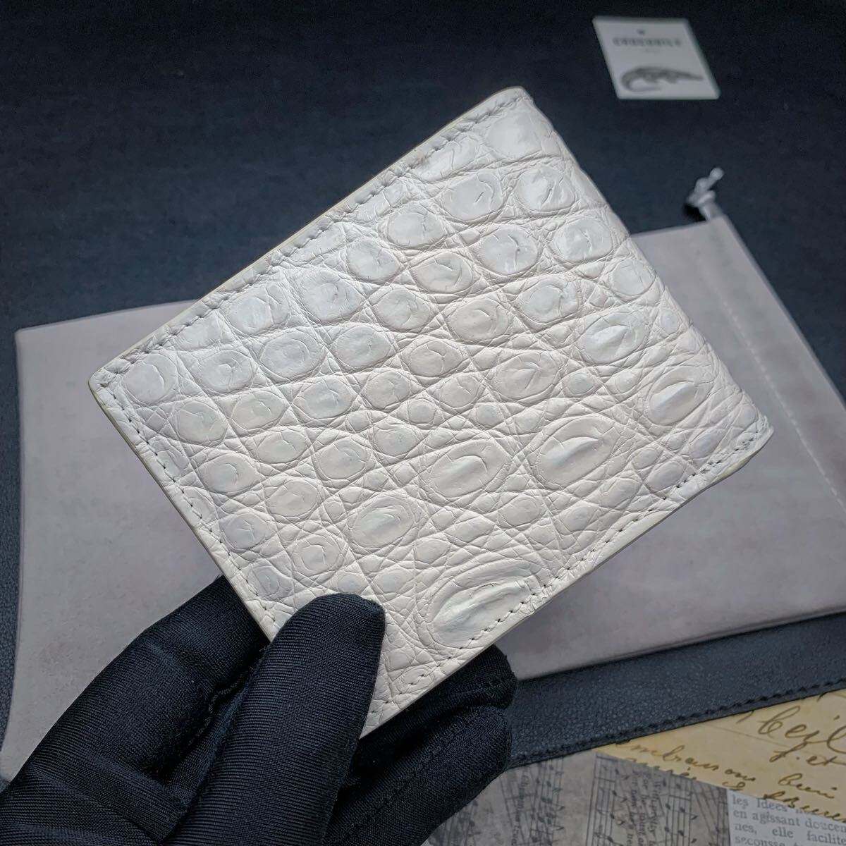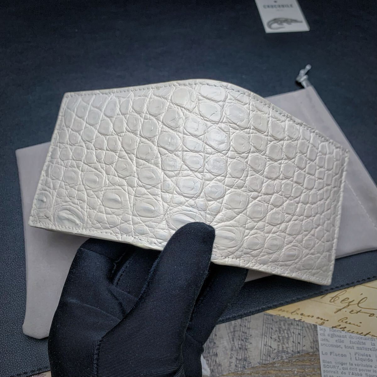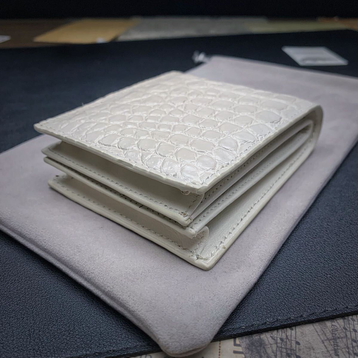 ・クロコダイルと呼ばれている品種のワニ革は人気が高く、独特の模様と凹凸が魅力で、高級ブランド品を中心にクロコダイルが多く使われています。今回はワニ革の代表格である『シャムクロコダイル』のセンターカット腹革の2つ折り財布を出品します。