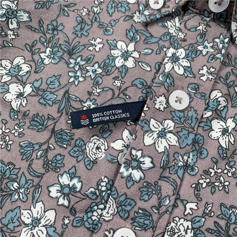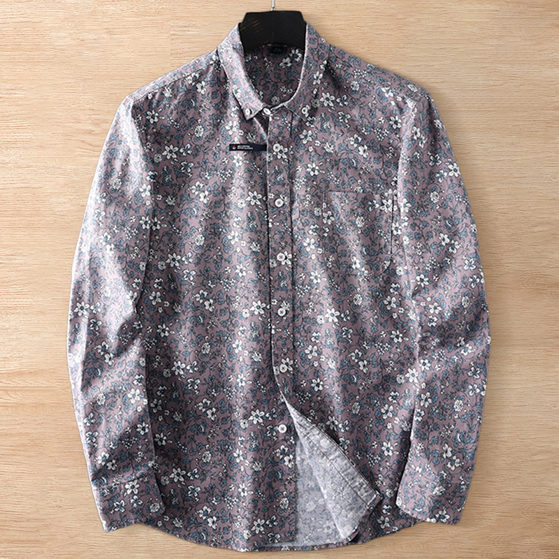 A5904-3XL グレーピンク 新品 DCKMANY メンズ 綿100% 花柄 長袖シャツ オックスフォード 防シワ 春秋 コットン カジュアル ボダンダウン ワイシャツ
