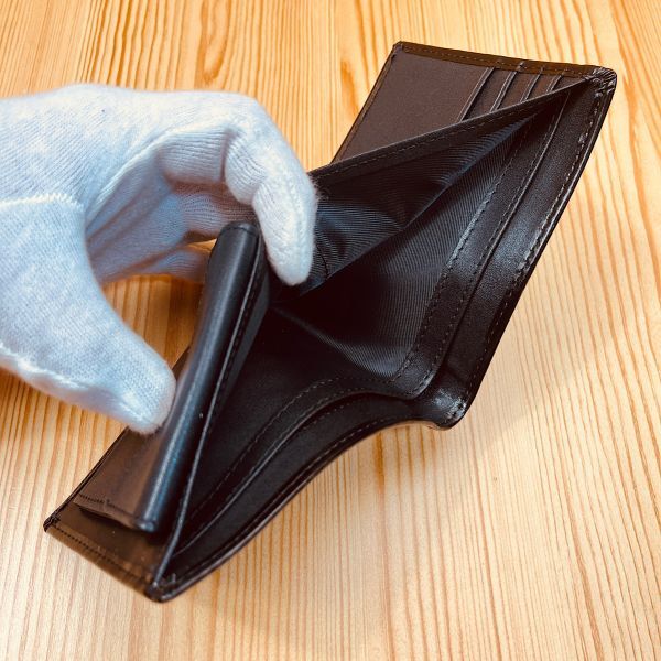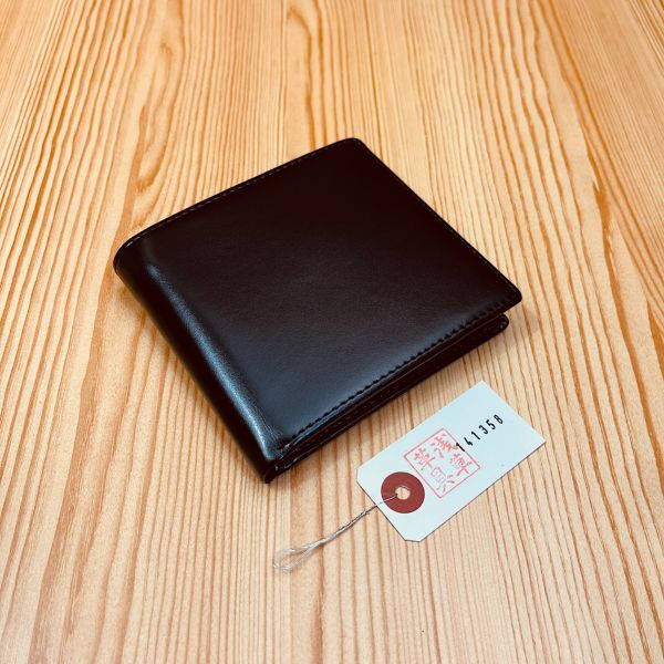 外装に艶やかで光沢のある染料仕上げのイタリアンレザーを使用し、内側にはとっても肌触りのよいヌメ革を使用した本革紳士財布。