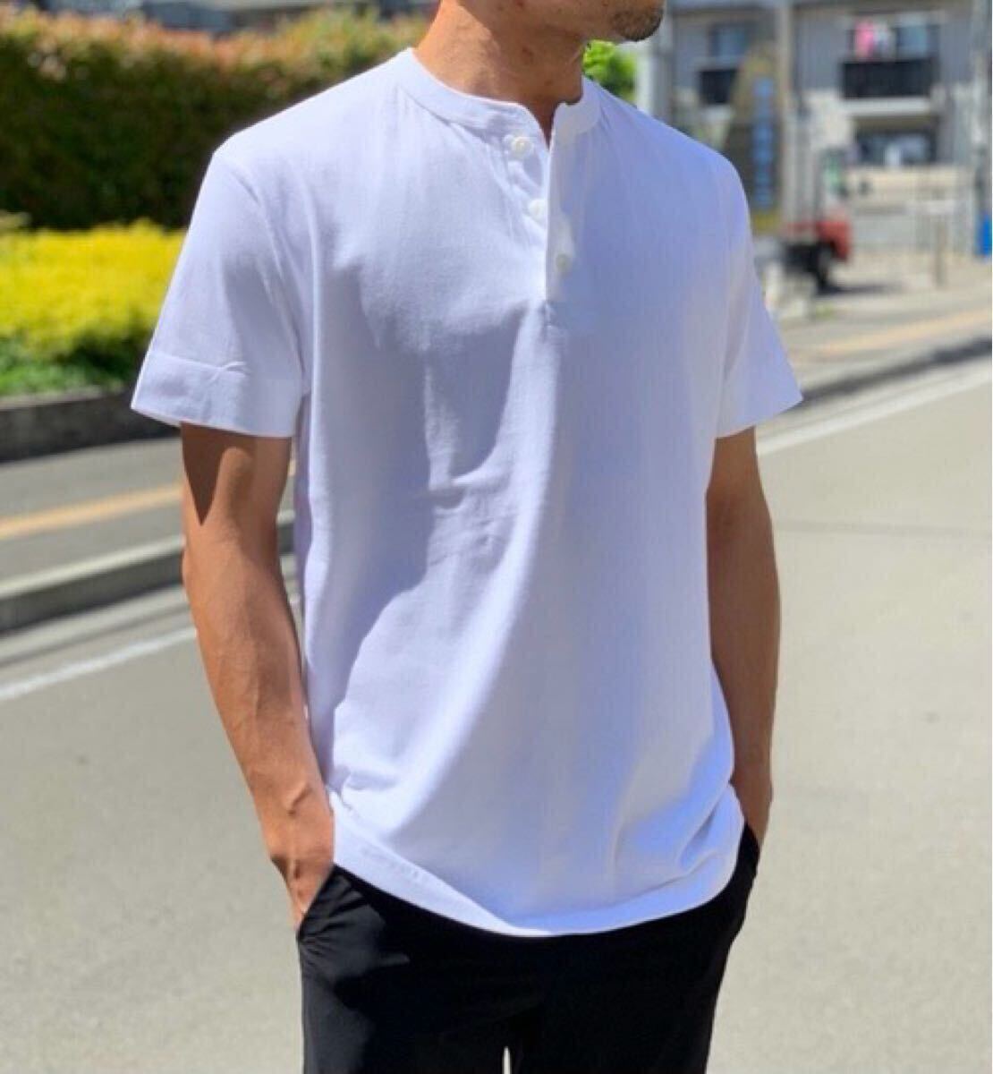 5.6oz ヘンリーネック 無地 半袖Tシャツ