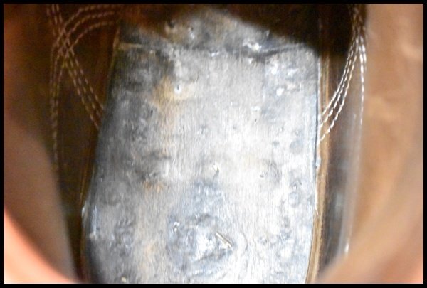 状態 シャフト上部に紐の跡があります。ヒールパッチが欠損しています。多少の擦れや薄汚れなど使用感がありますが、ソールは十分残っています。良好です。