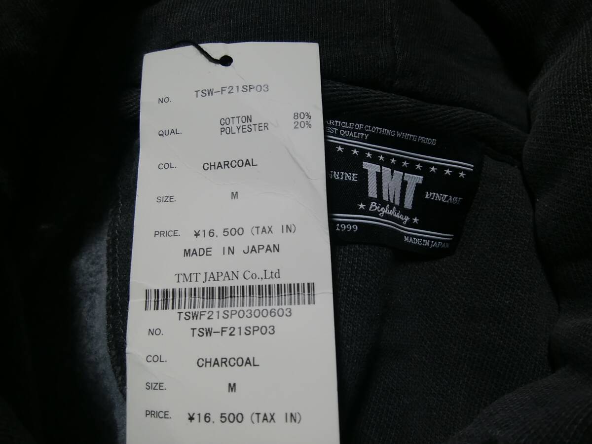【ブランド】TMT スウェットパーカ 日本製 紙タグ付 都内直営店購入品 定価16,500円