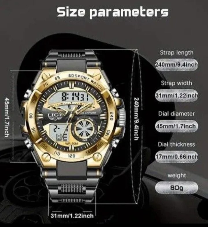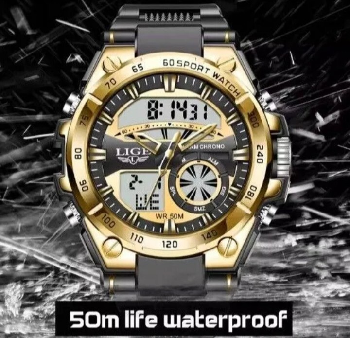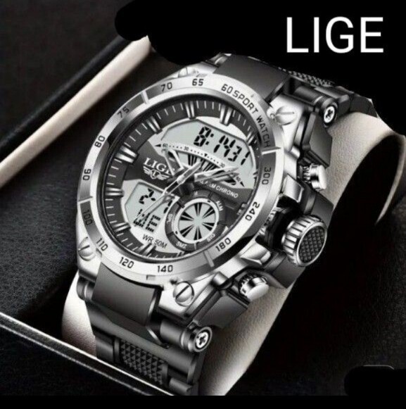 LIGE スポーツ腕時計 50m防水 ダイバーウォッチ バックライト シリコンバンド