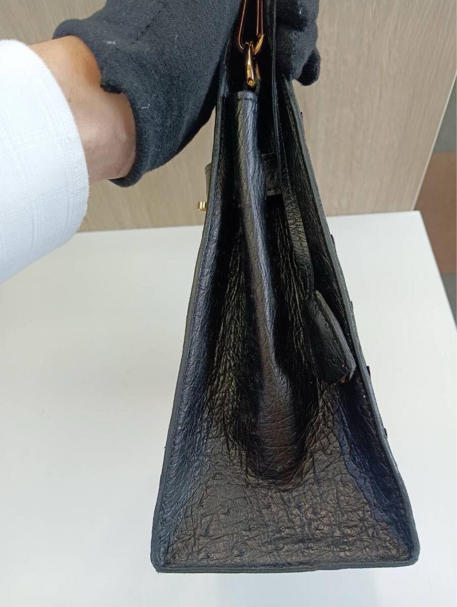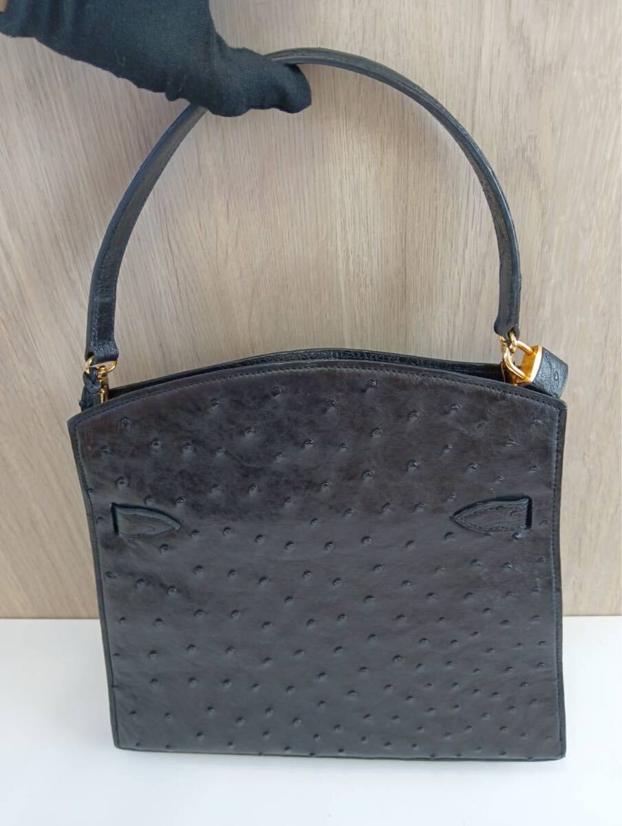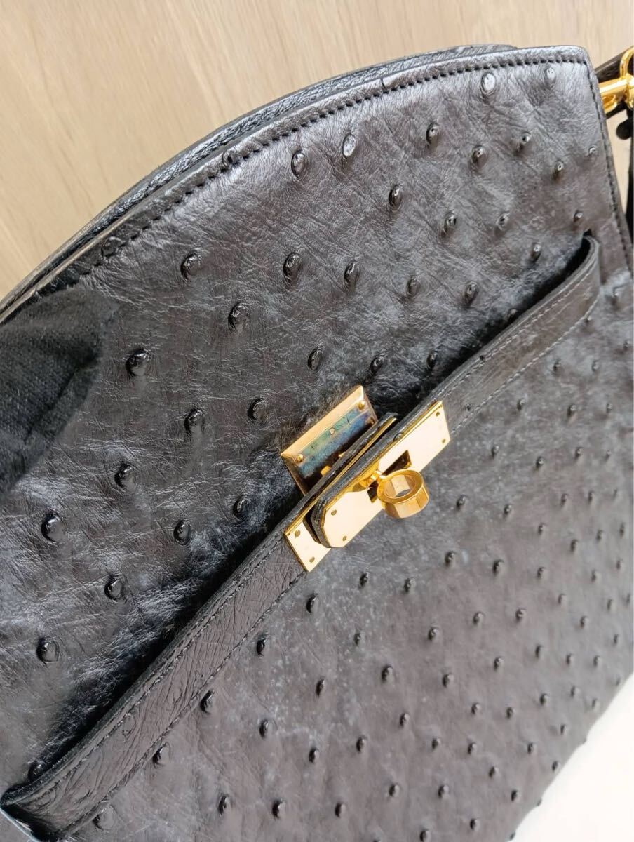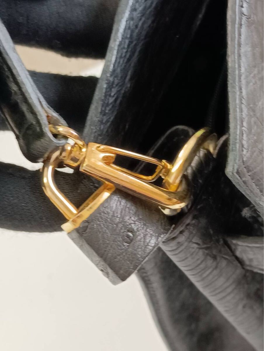 Crations B. P. オーストリッチ ゴールド金具付き 2WAY ハンドバッグ ショルダーバッグ 黒ブラック 肩掛け 手提げ バッグかばん 保存袋付き 現状品