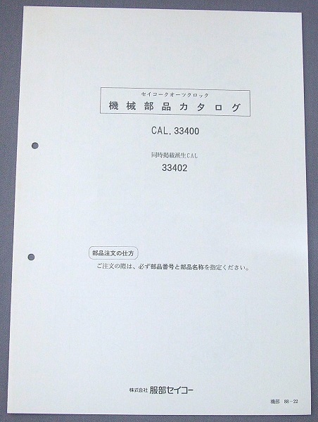 ◆ 稀少品!■ SEIKO・セイコー ★ セイコークオーツクロック 機械部品カタログ ◆ 仕様・部品画像・部品名・部品番号 ◆ 服部セイコー ■