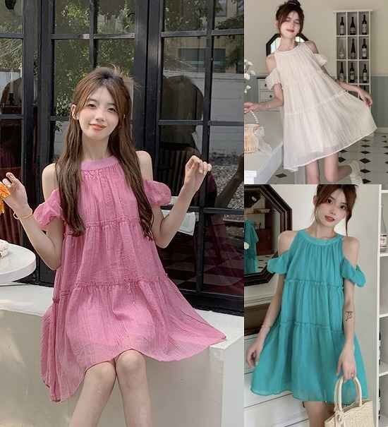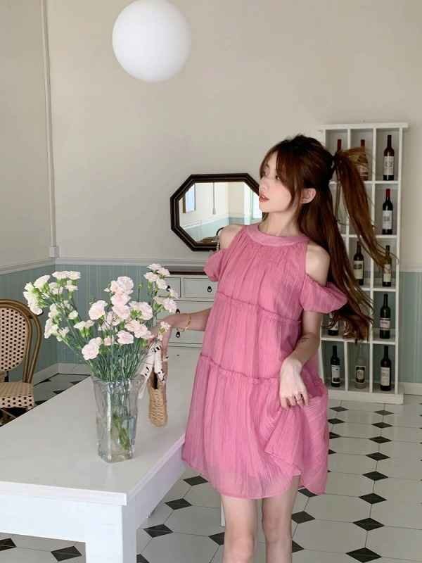 【M】着丈約83cm バスト約94cm 袖丈約13cm ウエスト約80cm 裾周り約214cm
