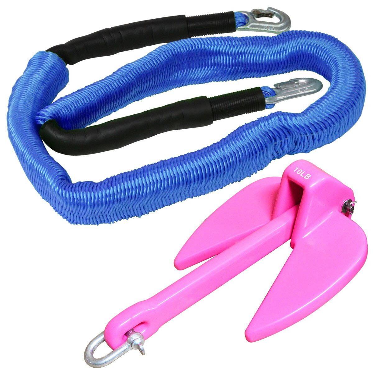 『伸縮ロープ/アンカーセット』爪型 アンカー 10LBS 4.5kg ピンク 6M フロート のびのび アンカー ロープ 青
