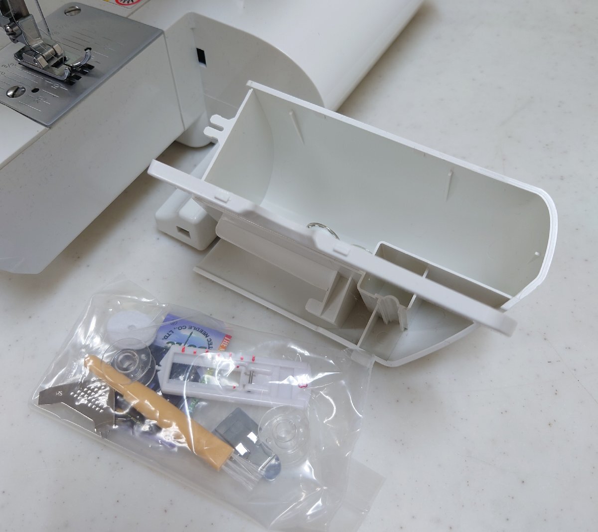 備考 両手が自由に使えるフットコントローラータイプの電動ミシン。フリーアームを採用し、袖口やズボンの裾、袋物などの筒物縫いが簡単にできる。