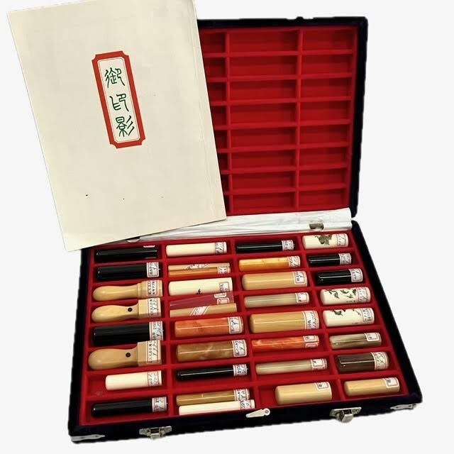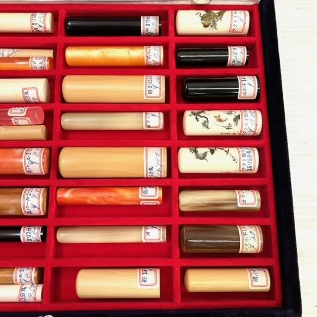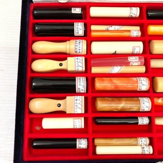 仙104【35点】印材 未刻印 まとめ売り ケース付き 柘 ラクト 黒水牛 オランダ水牛 赤パール 印章 印鑑 ハンコ 判子 スタンプ 古印材 書道具