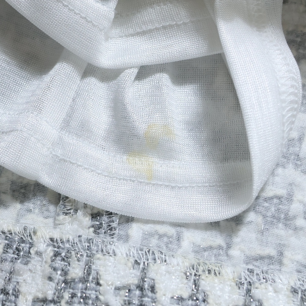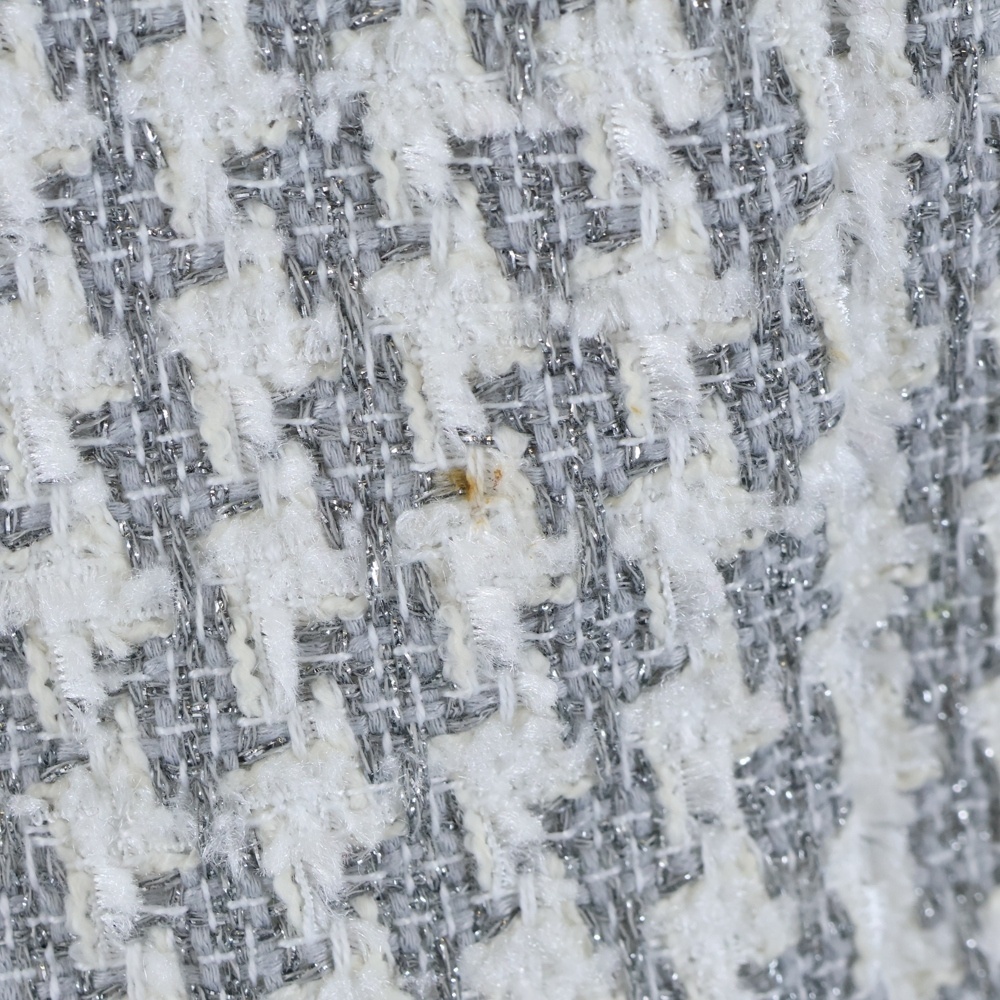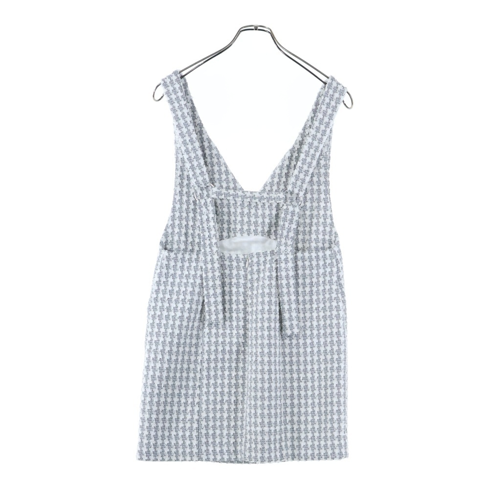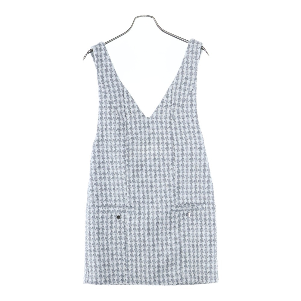 品名チェック総柄 ラメ ツイード ノースリーブ ミニ ジャンパースカート ワンピース シルバー/ホワイト レディース