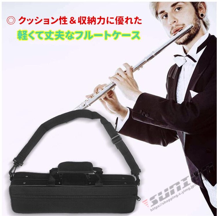 フルートケース 楽器 管楽器 フルート C管用 H管用 ハードケース ケース クッション付き 手提げ ショルダー ブラック