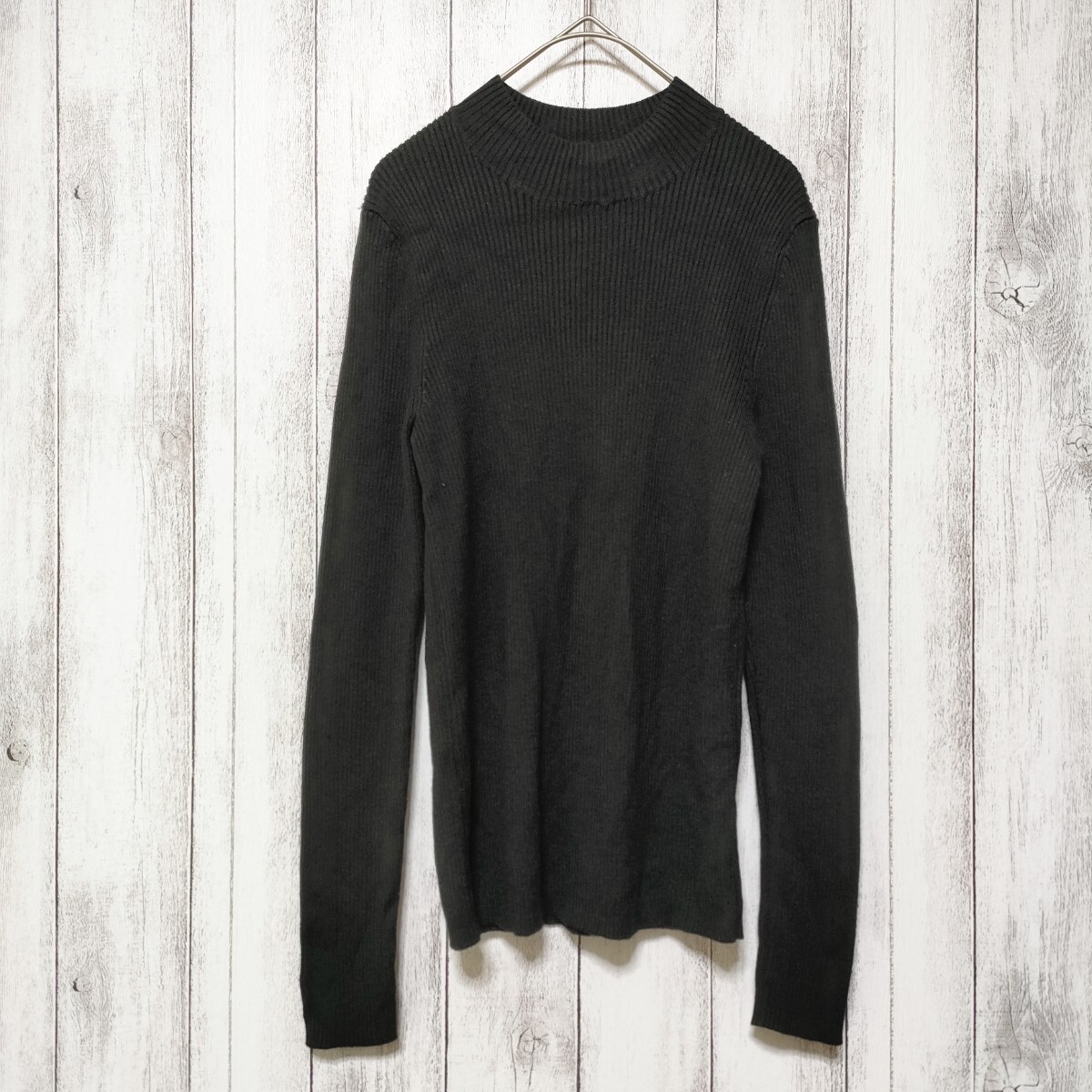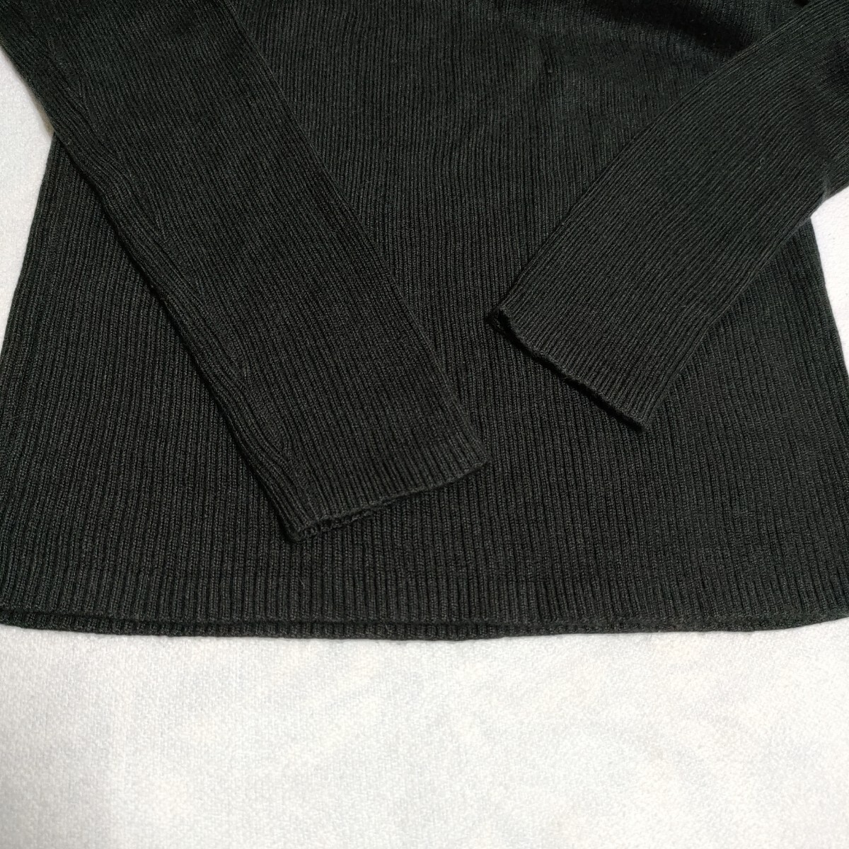 すっきり見えするリブニットセーター。