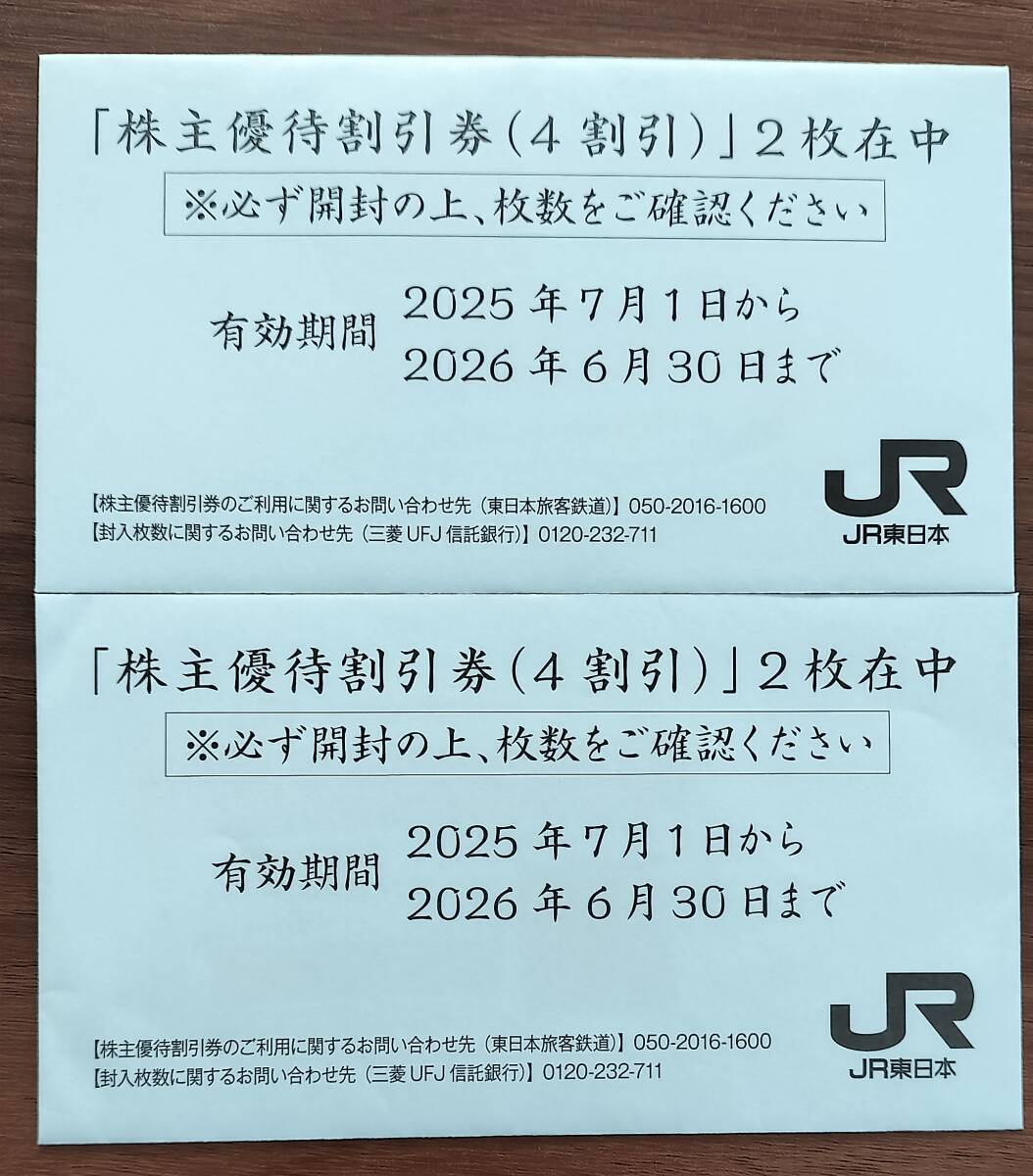 ◆商品名:JR東日本株主優待割引券(4割引)2枚2セット(計4枚)