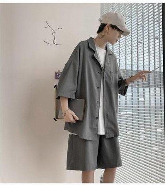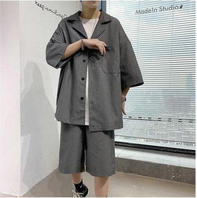 夏 半袖 上下セット 短パン シャツ メンズ 無地 カジュアル ホームウエア 部屋着 スウェットグレー XL