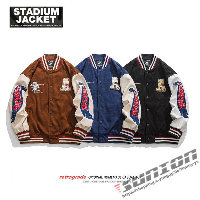 ◇[商品スペック]■[素材]■本体:ポリエステル65%/綿35%■リブ:ポリエステル95%/ポリウレタン5%■シーズン: 春秋冬◇[商品特徴]◎トレンドとベーシックを兼ね備えたバイカラーの配色がポイントのT/C裏毛ワッペン刺繍スタジャン。◎肌触りのいいコットン×ポリエステル素材に裏毛を施し、楽な着心地を実現。◎ゆったりとしたビッグシルエットのボディにカレッジ風ワッペン刺繍が大人の遊び心をくすぐる仕上がりに。◎メンズだけでなくレディースの方にもユニセックスとしてご着用頂けるスタジアムジャンパーをぜひ。