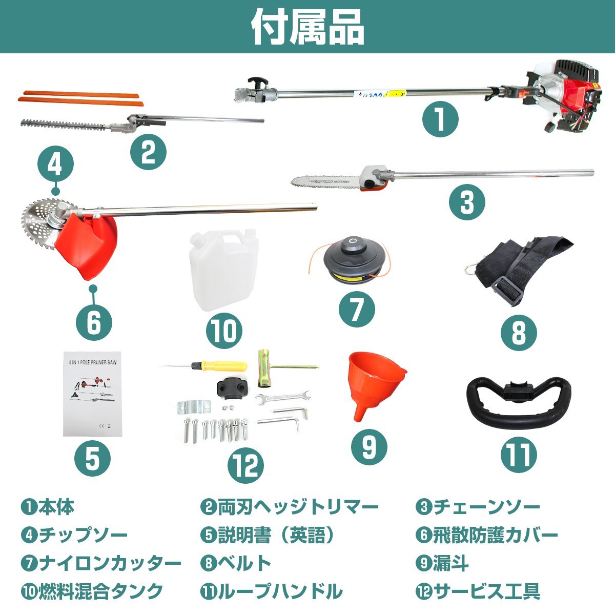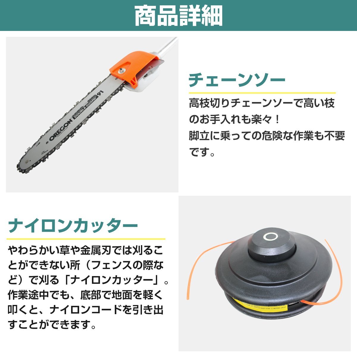 草刈り機、高枝切りチェーンソー、ヘッジトリマーとして使える