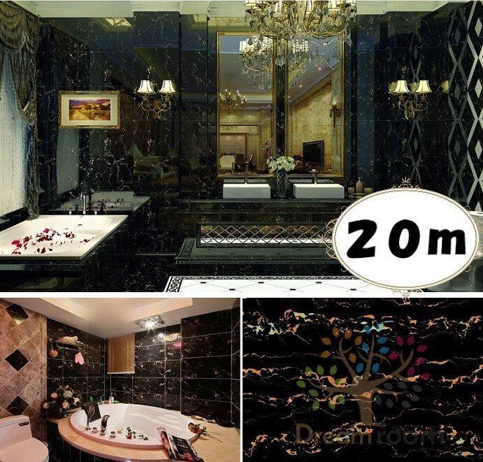 【 20m 】 大理石模様 ブラック 黒系 B02 壁紙 シール 61cm幅 DIY 防水 カッティングシート クロス 糊付き ウォールペーパー