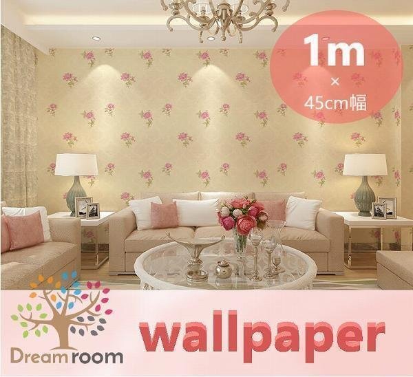 少量パック【 1m 】 花柄 薔薇×ピンク 壁紙 アンティーク ウォールペーパー 北欧風 インテリア リビング はがせる シール DIY