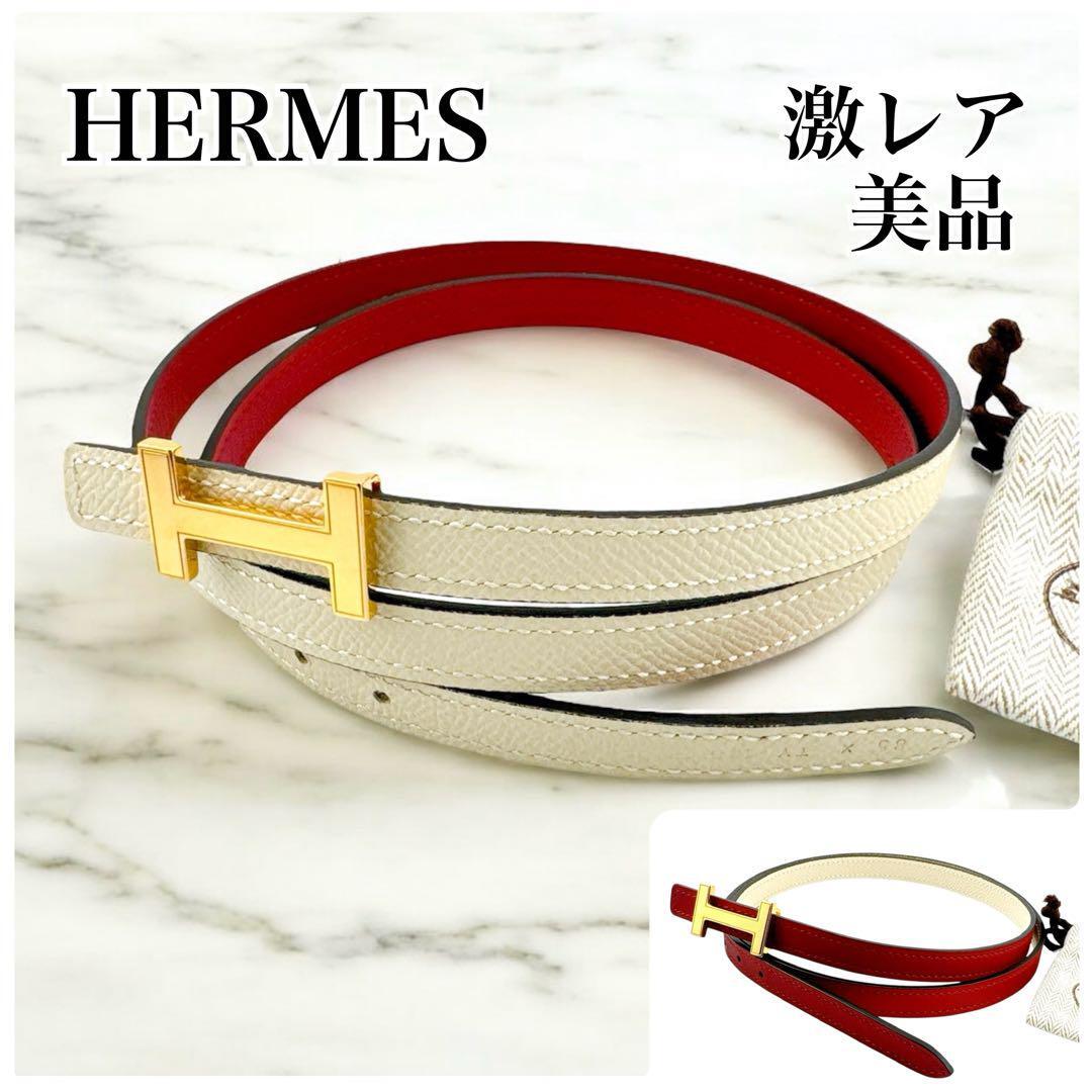 希少◇美品◇エルメス ミニHベルト リバーシブル 1.3cm ルージュxベージュ レディース