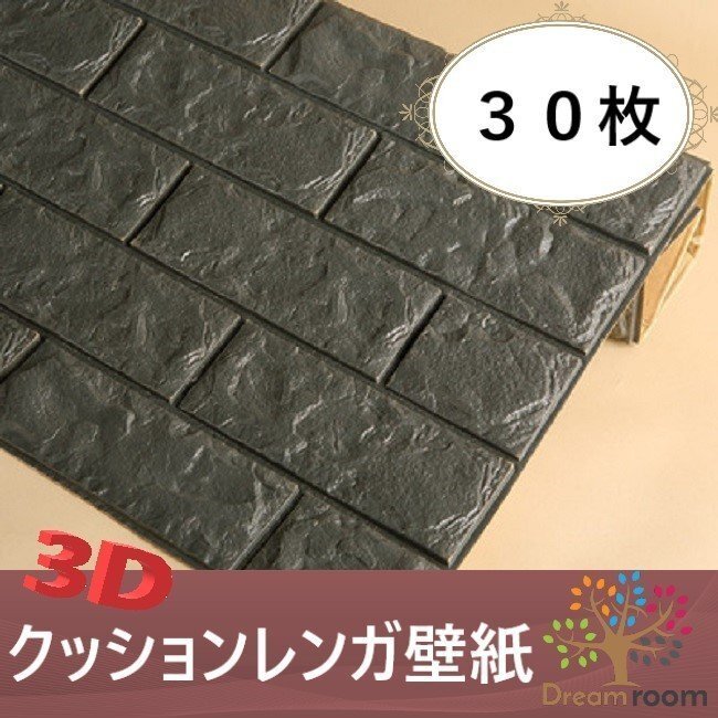 【30枚】高品質 3D クッション 壁紙シール ブラック/墨黒 レンガ調 糊付き はがせる クロス 70×77cm アンティーク 耐水 抗菌 落書き 傷防止
