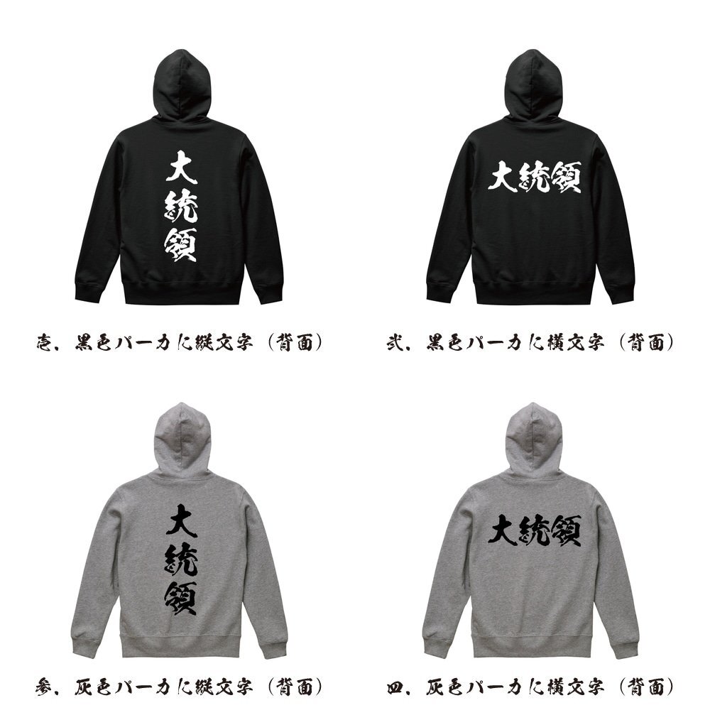 大統領 オリジナル パーカ 書道家が書く プリント フルジップ パーカー S M L XL XXL 110 130 150 【 職業 】