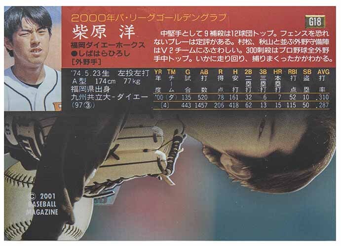 即決! 2001 BBM 2000 Golden Glove #G18 柴原洋 挿入 カード